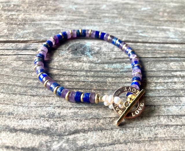 LOVE ラピスラズリとアメジストのヴィンテージブレスレット LOVEトグル