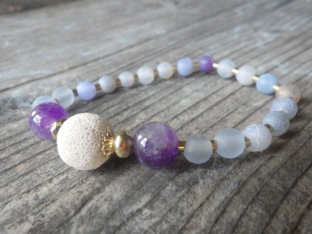 ヨガの瞑想や気分転換にもなどにもピッタリのブレスレットです。ゴムでつないでますので留め具がなく装着も楽々♪