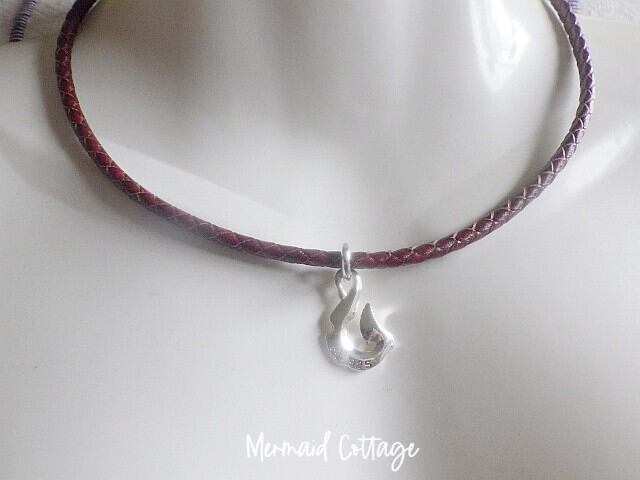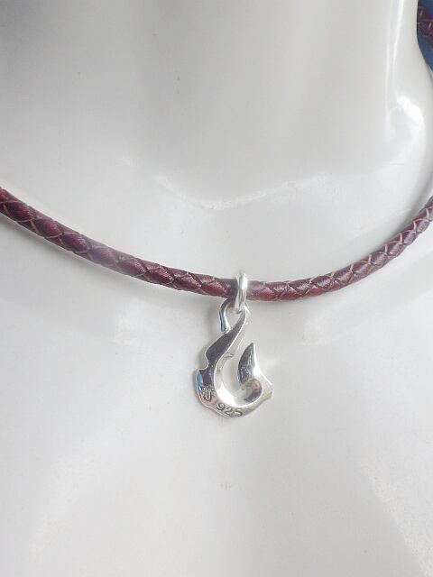 焦茶色のしっかりとした牛革4つ編みの革紐のペンダントをあわせました