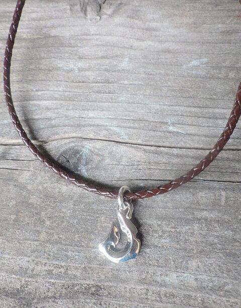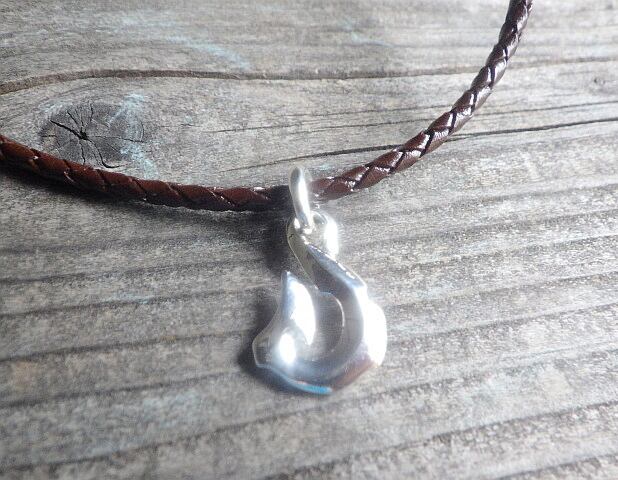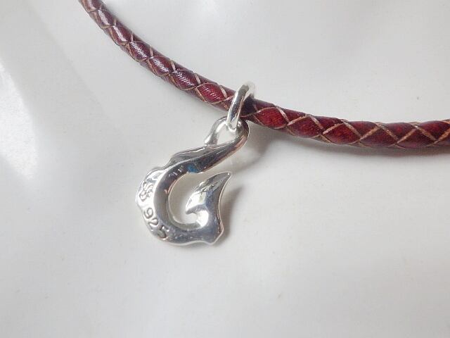 釣り好きさんやサーファーさんに大人気のシルバー925製の釣り針モチーフ(フィッシュフック)と革紐のネックレスです