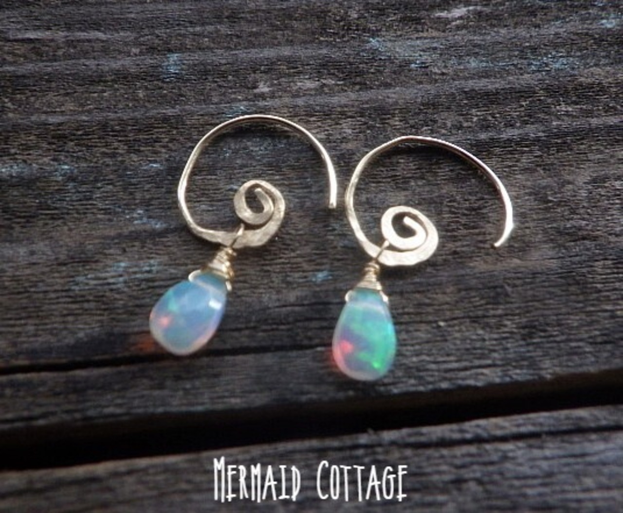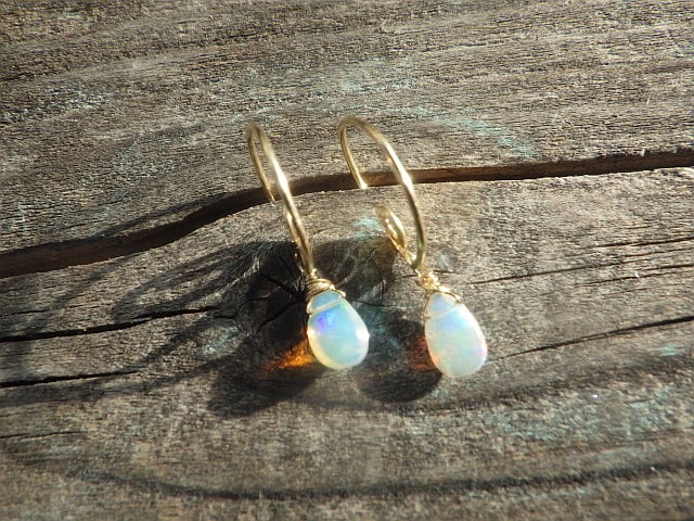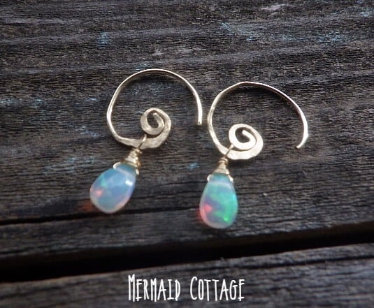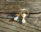 エチオピア産の極上プレシャスオパールの雫が揺れる波をイメージした渦巻きフックピアスを作りました