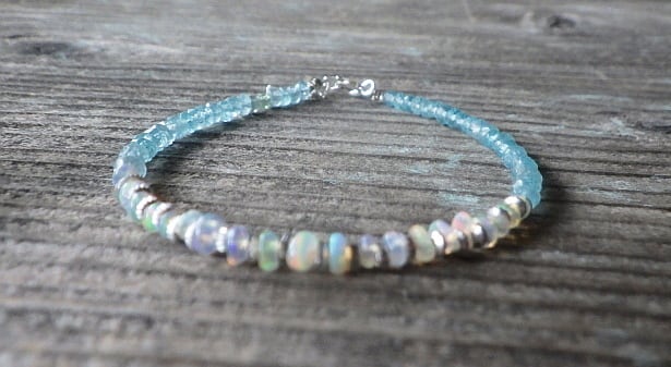 そんなプレシャスオパールをアパタイトの間にふんだんに散りばめたとても美しいブレスレットです
