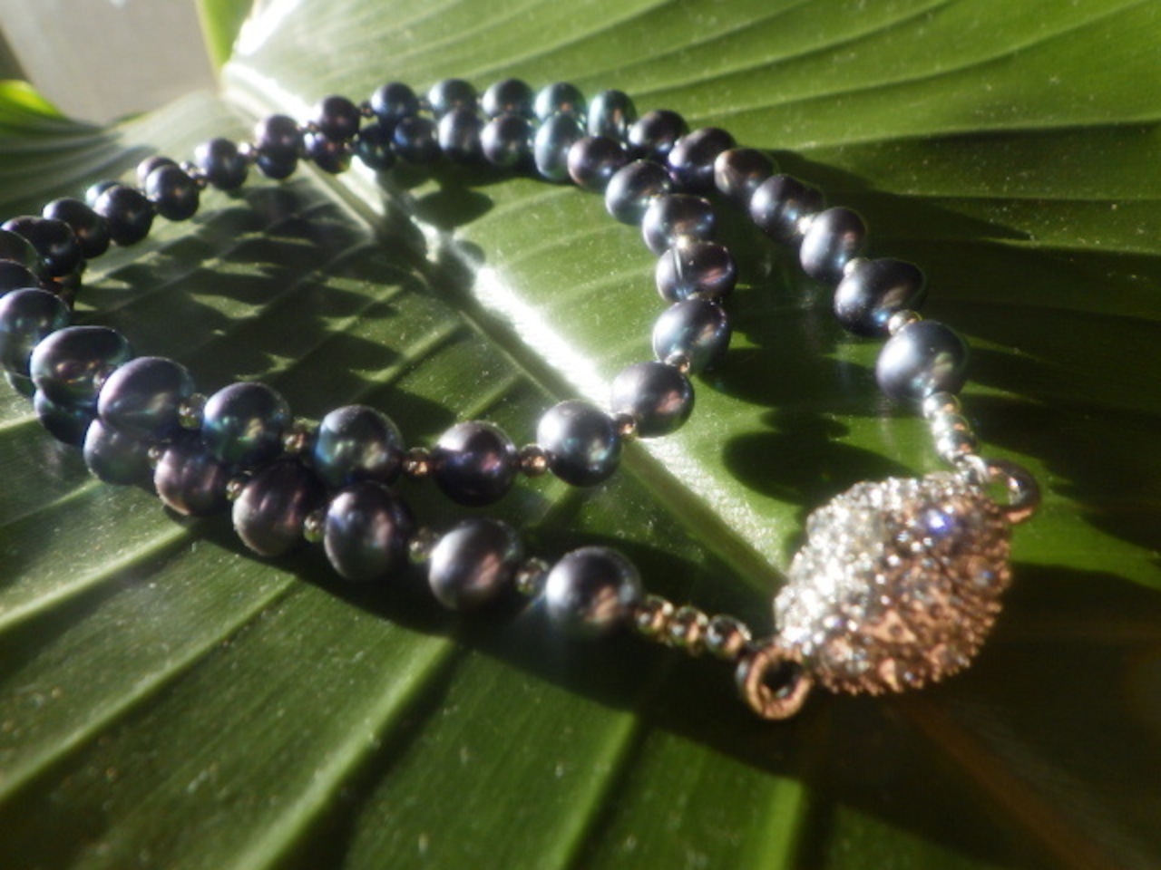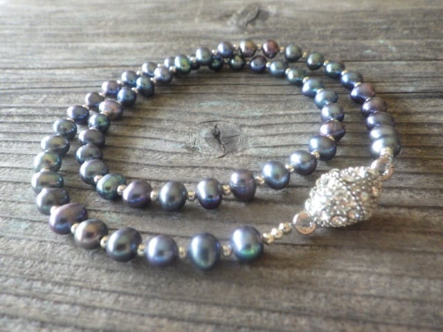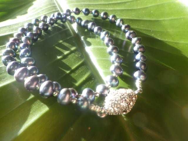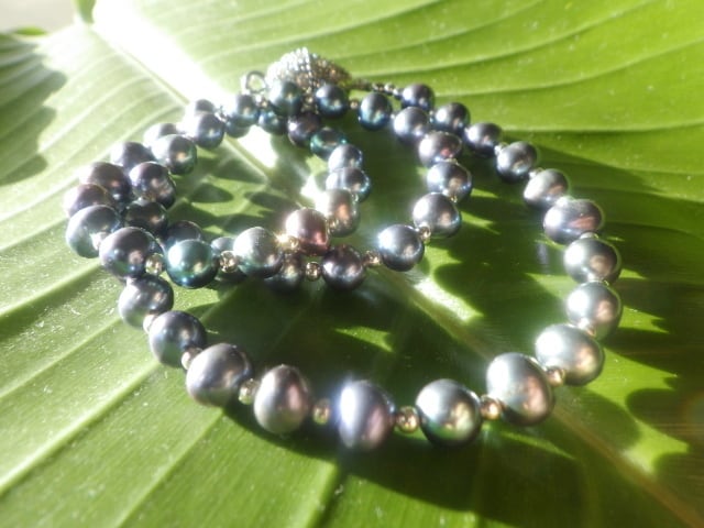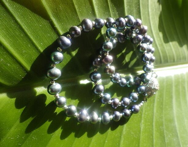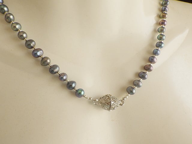 ☆再販☆Flesh Pearl Necklace 淡水パールのネックレス ☆ビッグマグネットクラスプ☆黒蝶真珠 バロックパール