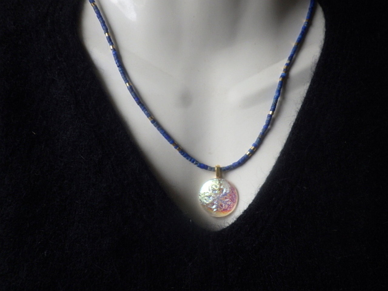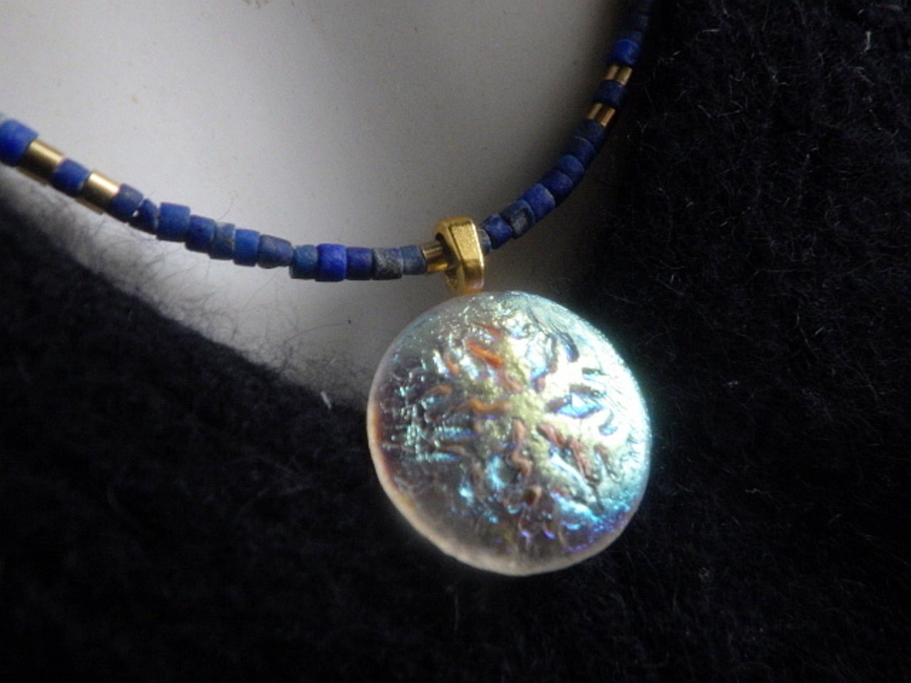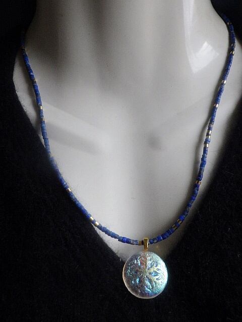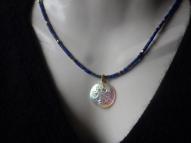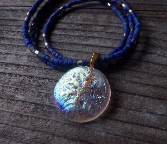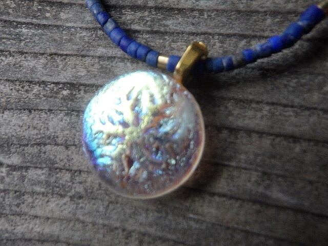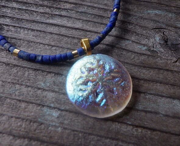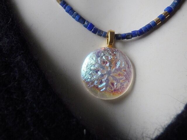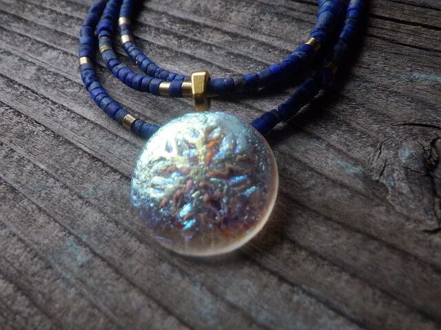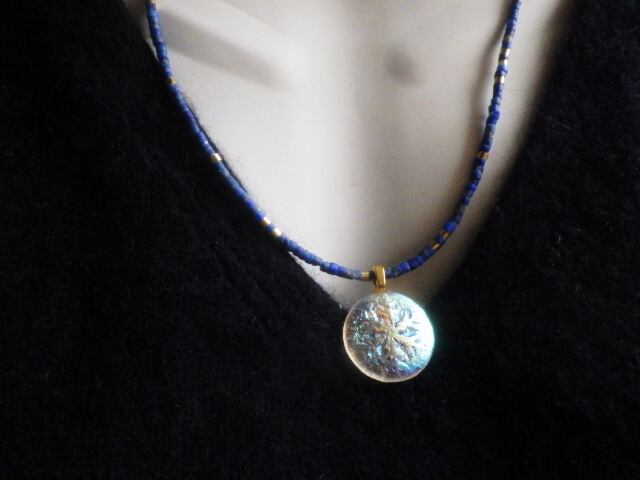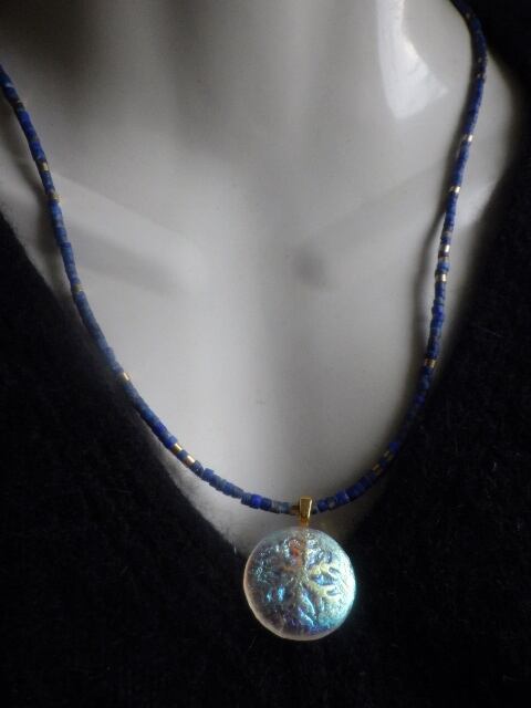 オーロラ色に輝くとーっても綺麗なスノーフレークが胸元を飾る、12月の誕生石ラピスラズリのロマンティックなネックレスはいかが?