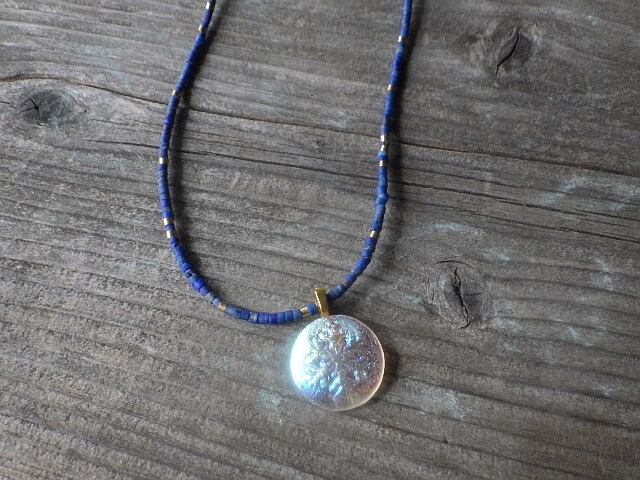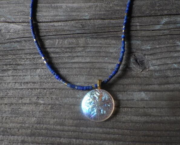 こちら、ALL天然石のラピスネックレスからスノーフレークのトップをずらして外せるようにしましたので、