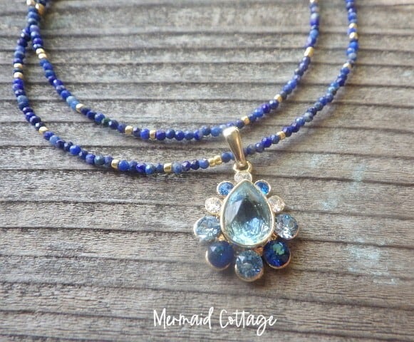 ラピスラズリ/バミューダブルー/大人のビーチジュエリー/ラピスラズリ/ハワイアンスタイル/爽やか/一点物/ダイビング/3WAY/天然石ジュエリー/夏ジュエリー/ギフト