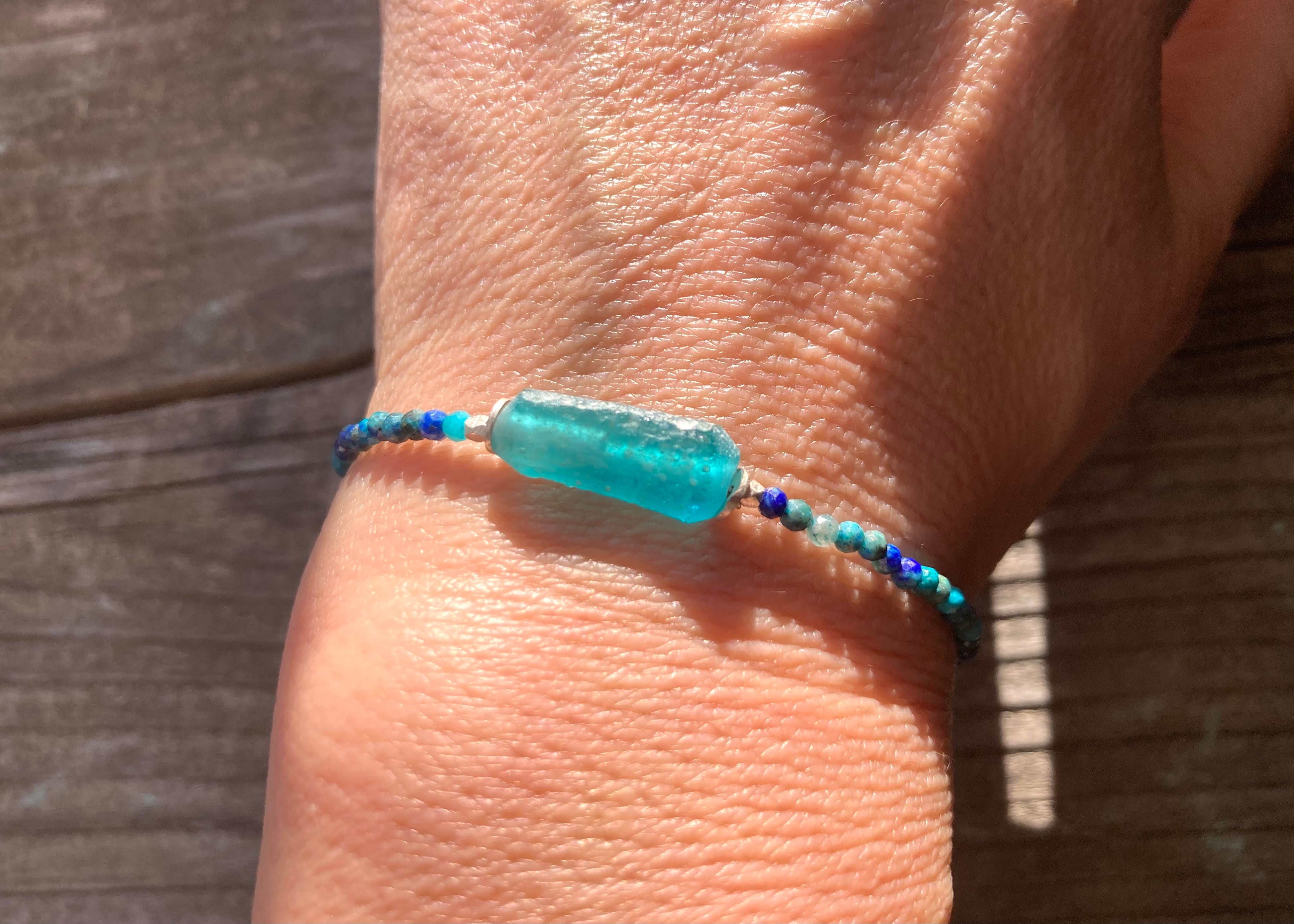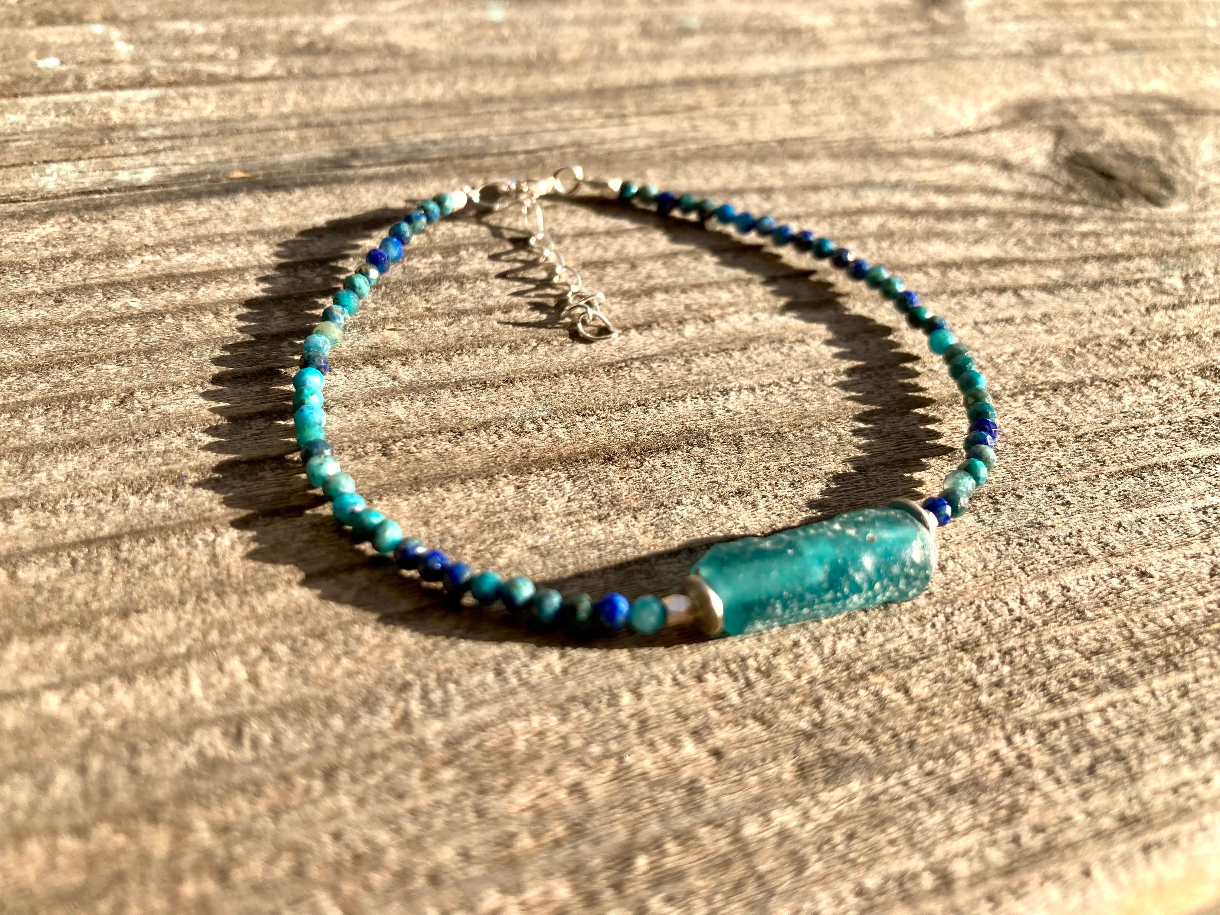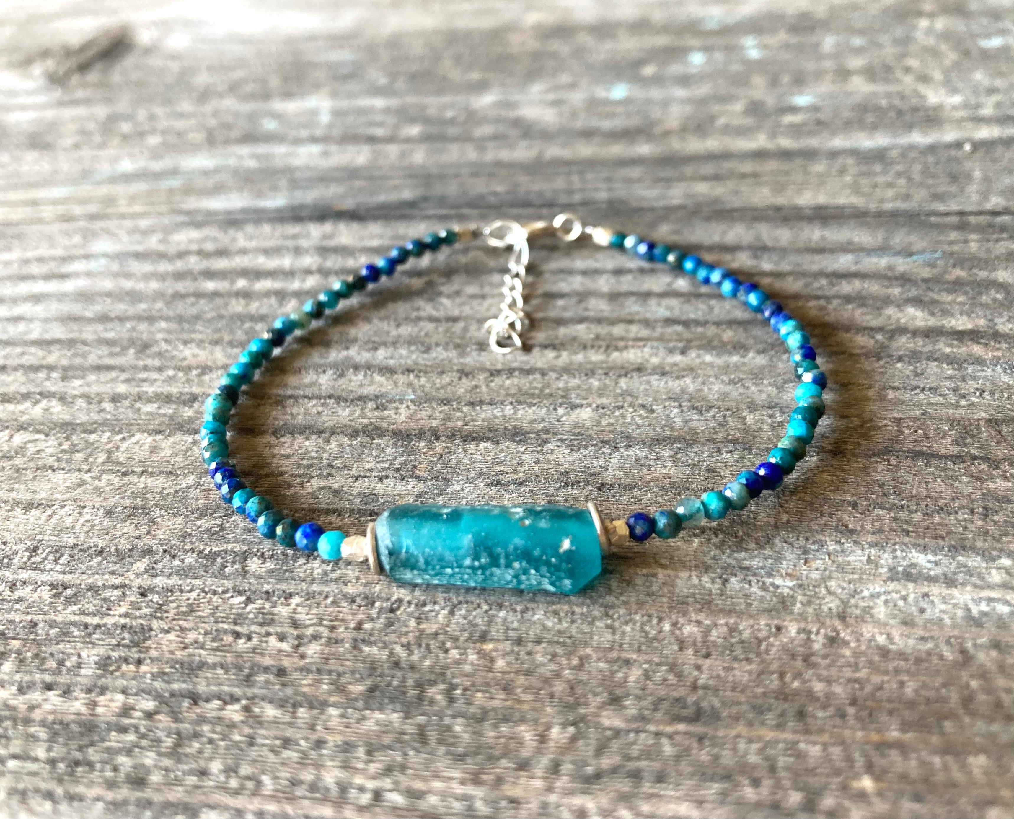 *sv925*ローマングラスとクリソコラの海色ブレスレット