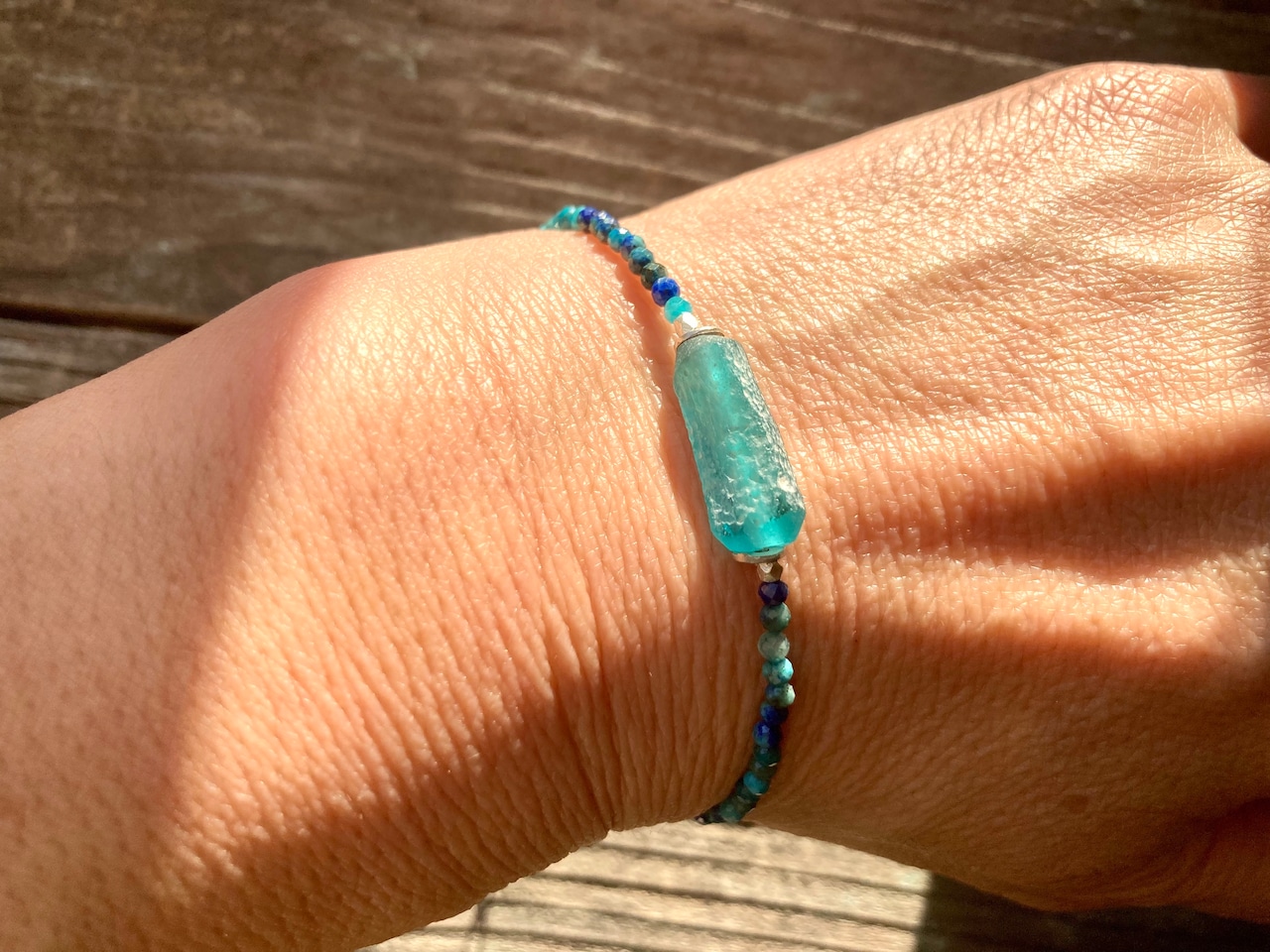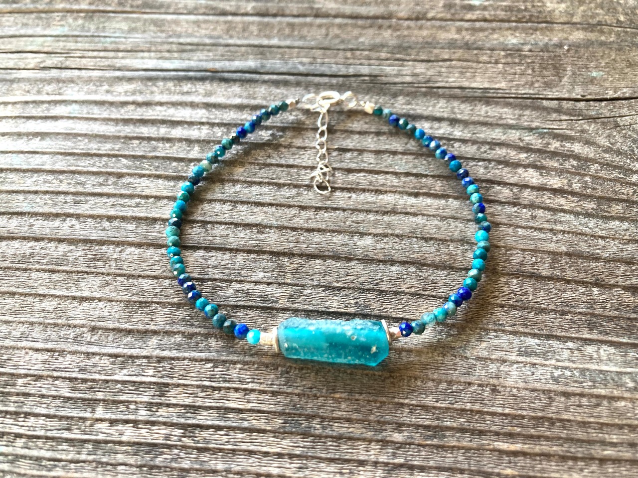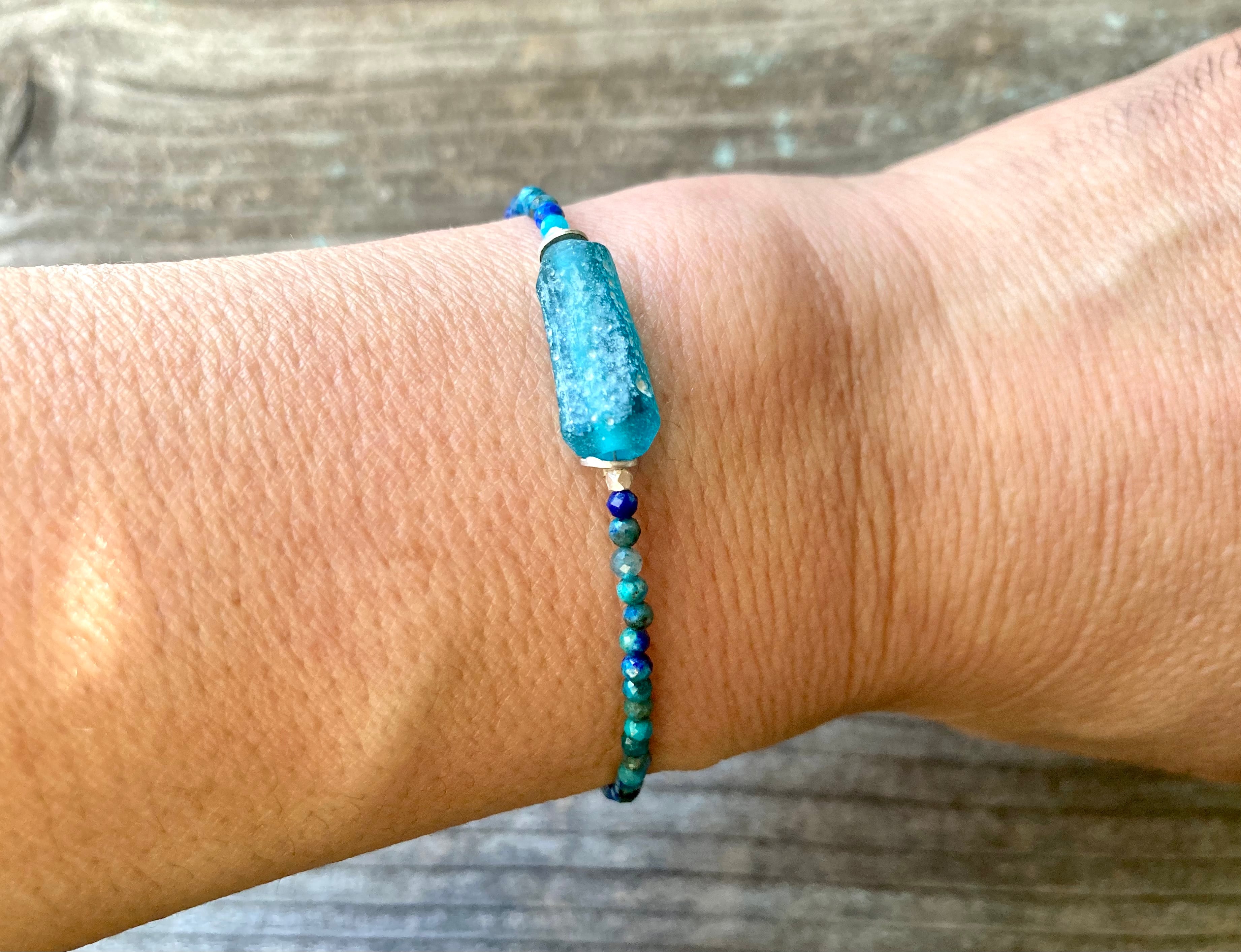 *sv925*ローマングラスとクリソコラの海色ブレスレット