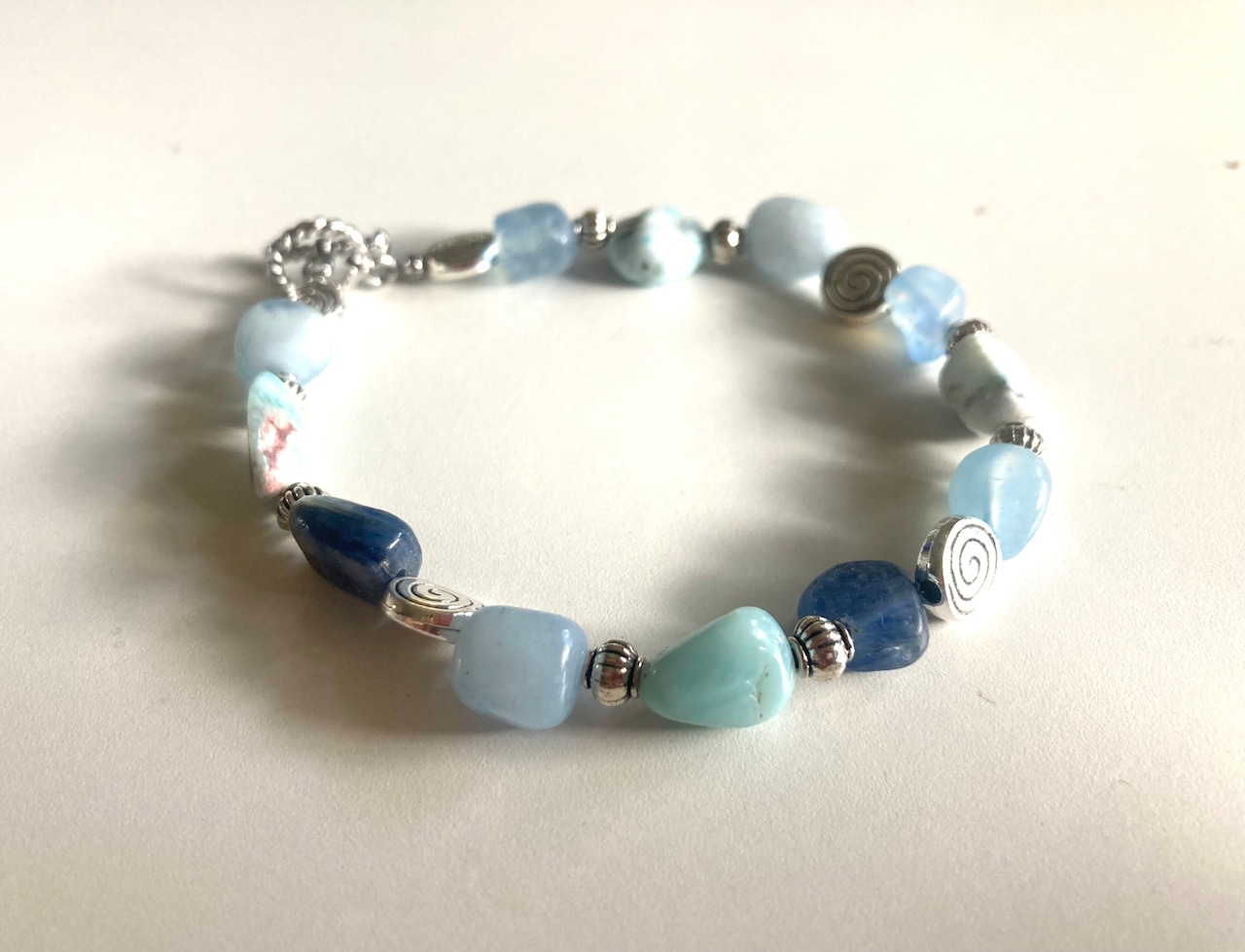 ブルーのグラデーションが美しい天然石ブレスレットです。