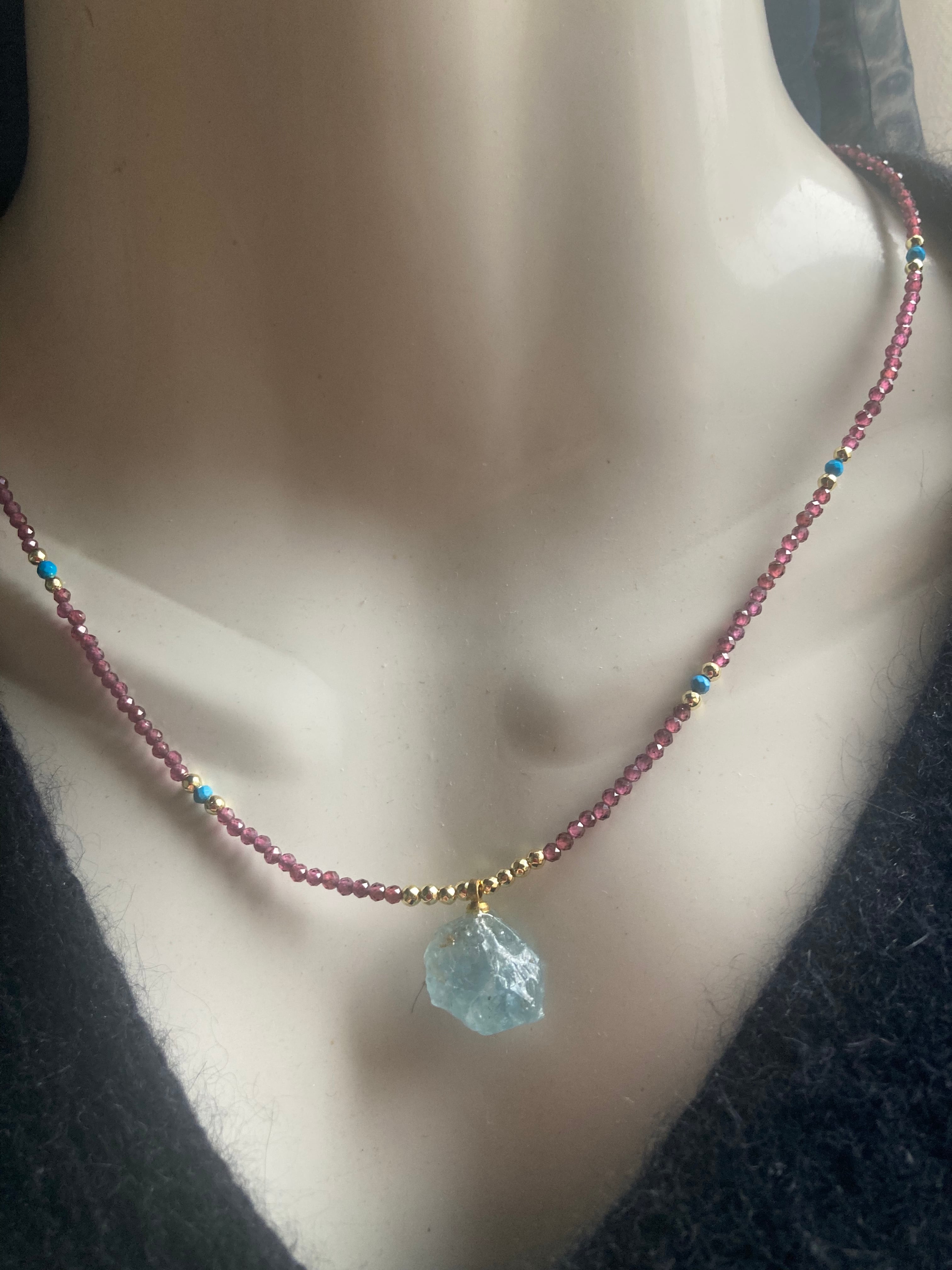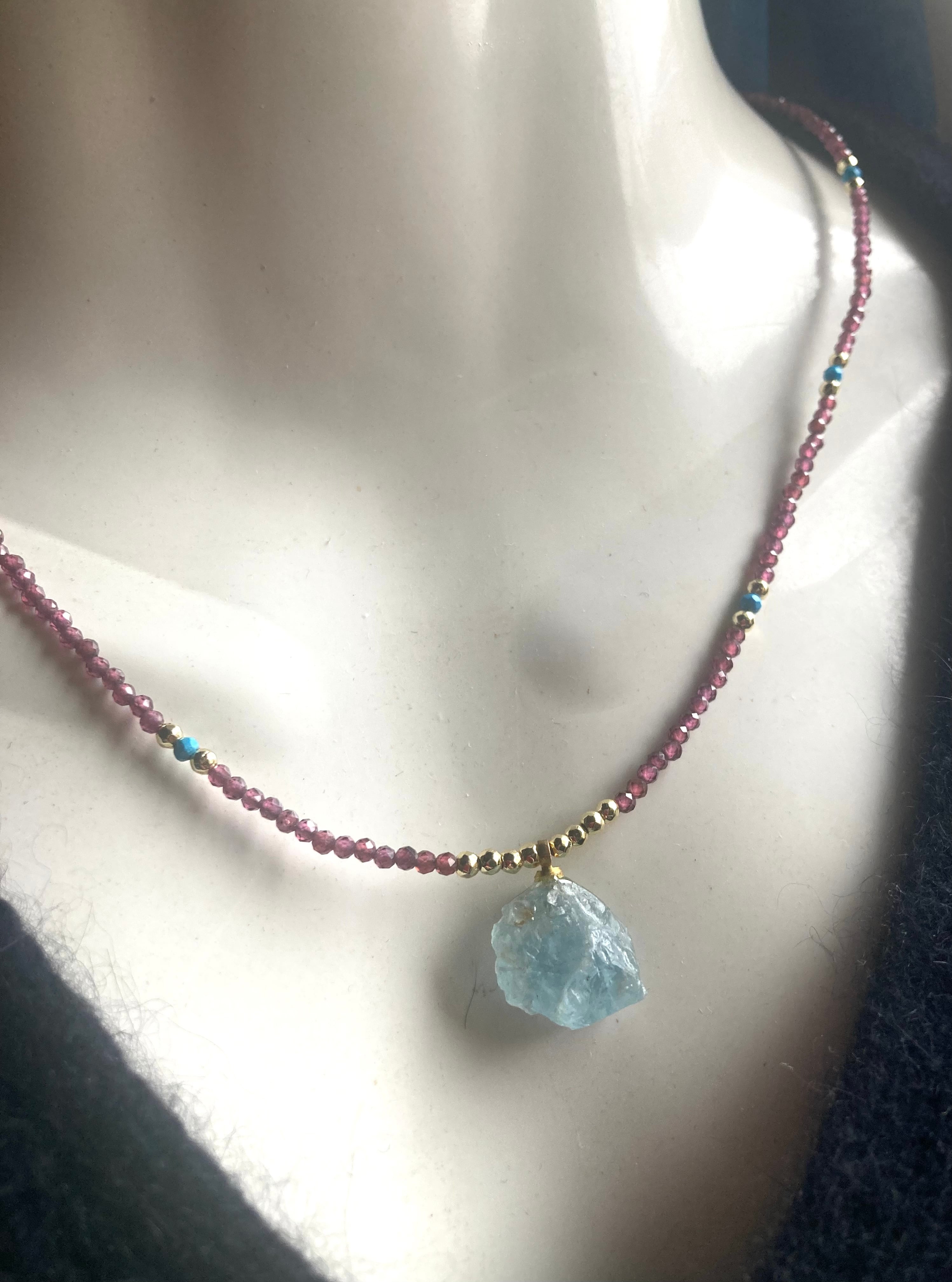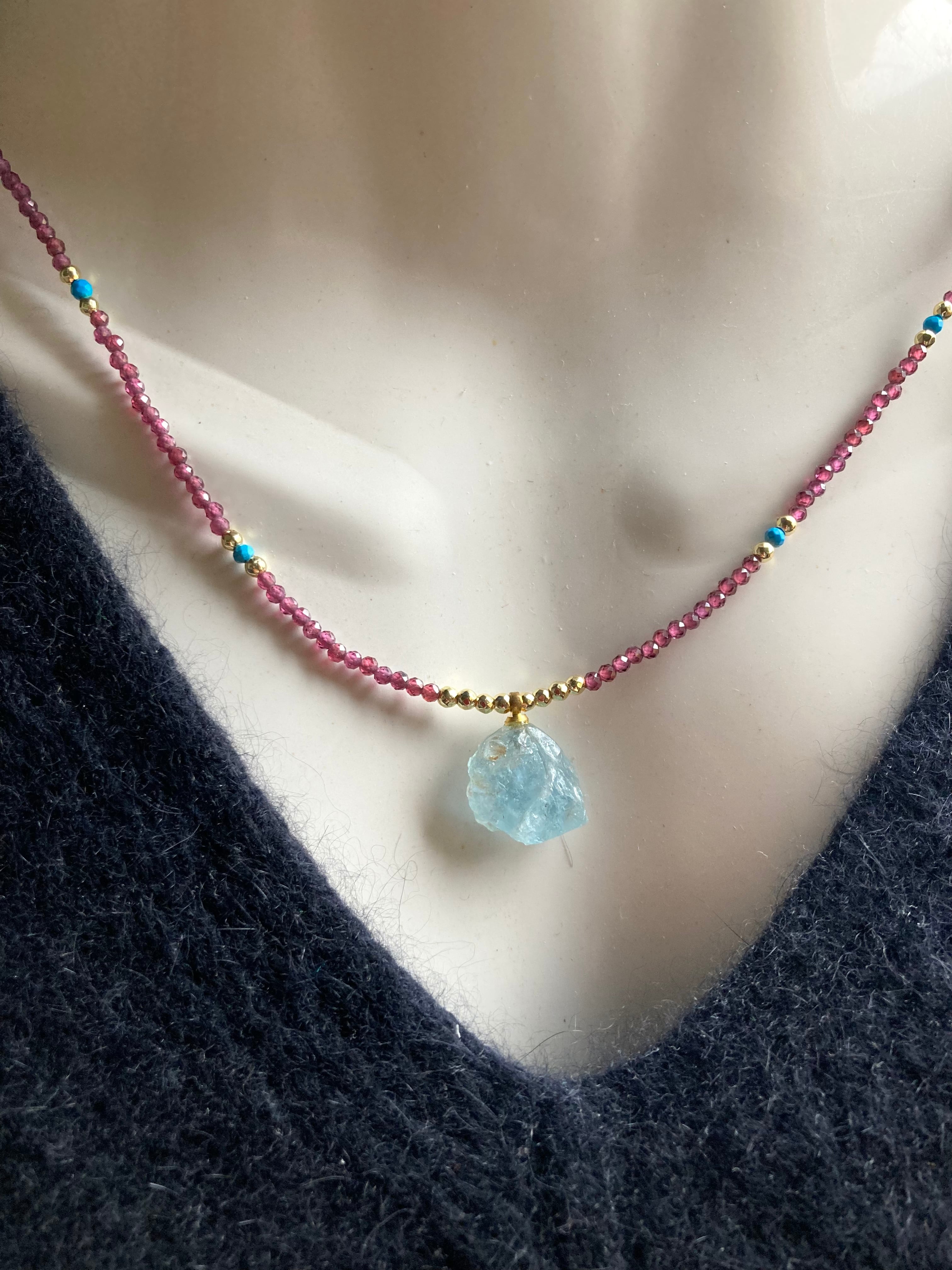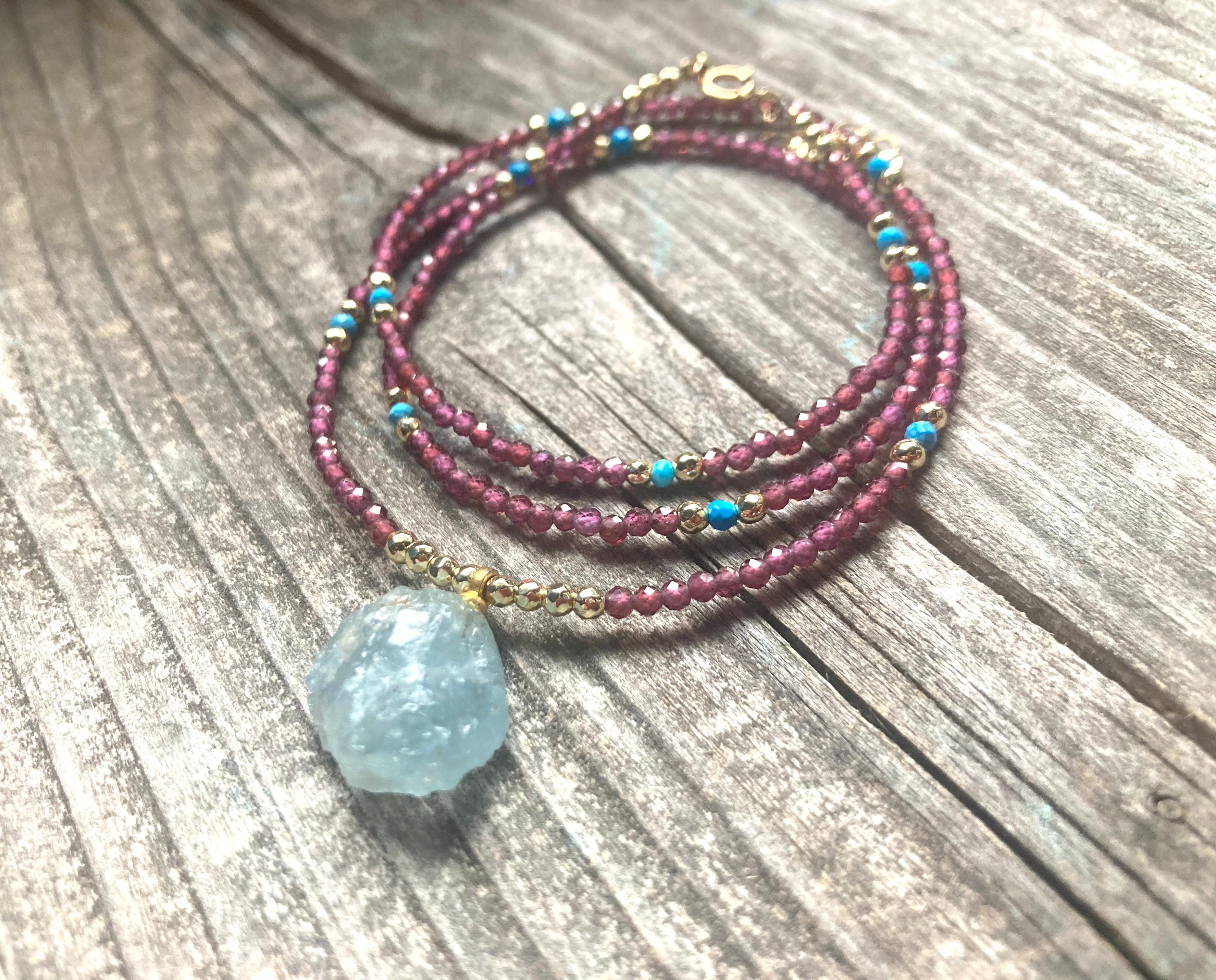 Marine Serenity & Garnet Glow アクアマリン原石とガーネットの海の女神の首飾り *14kgf*