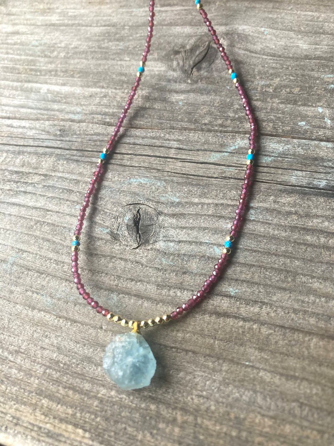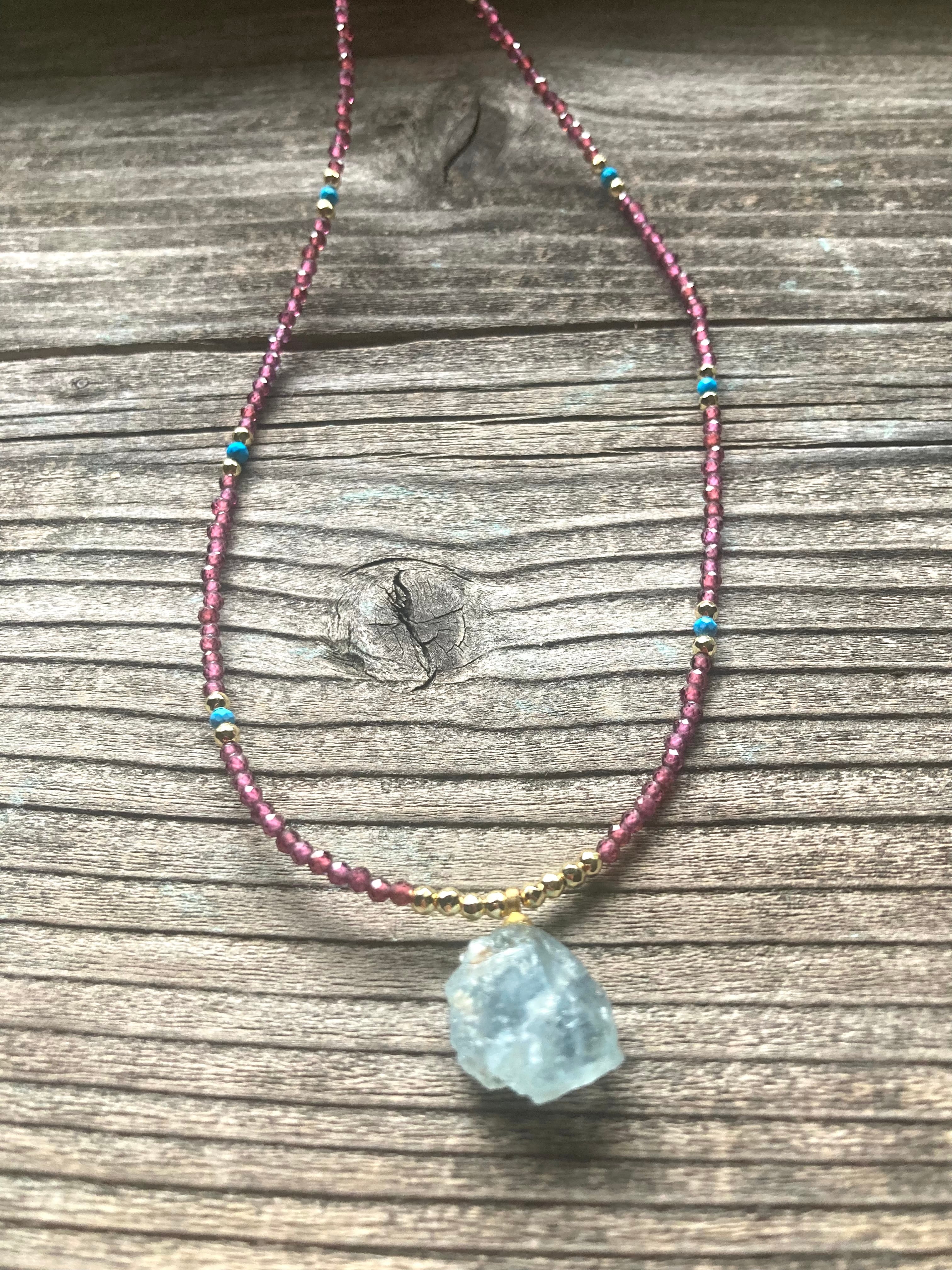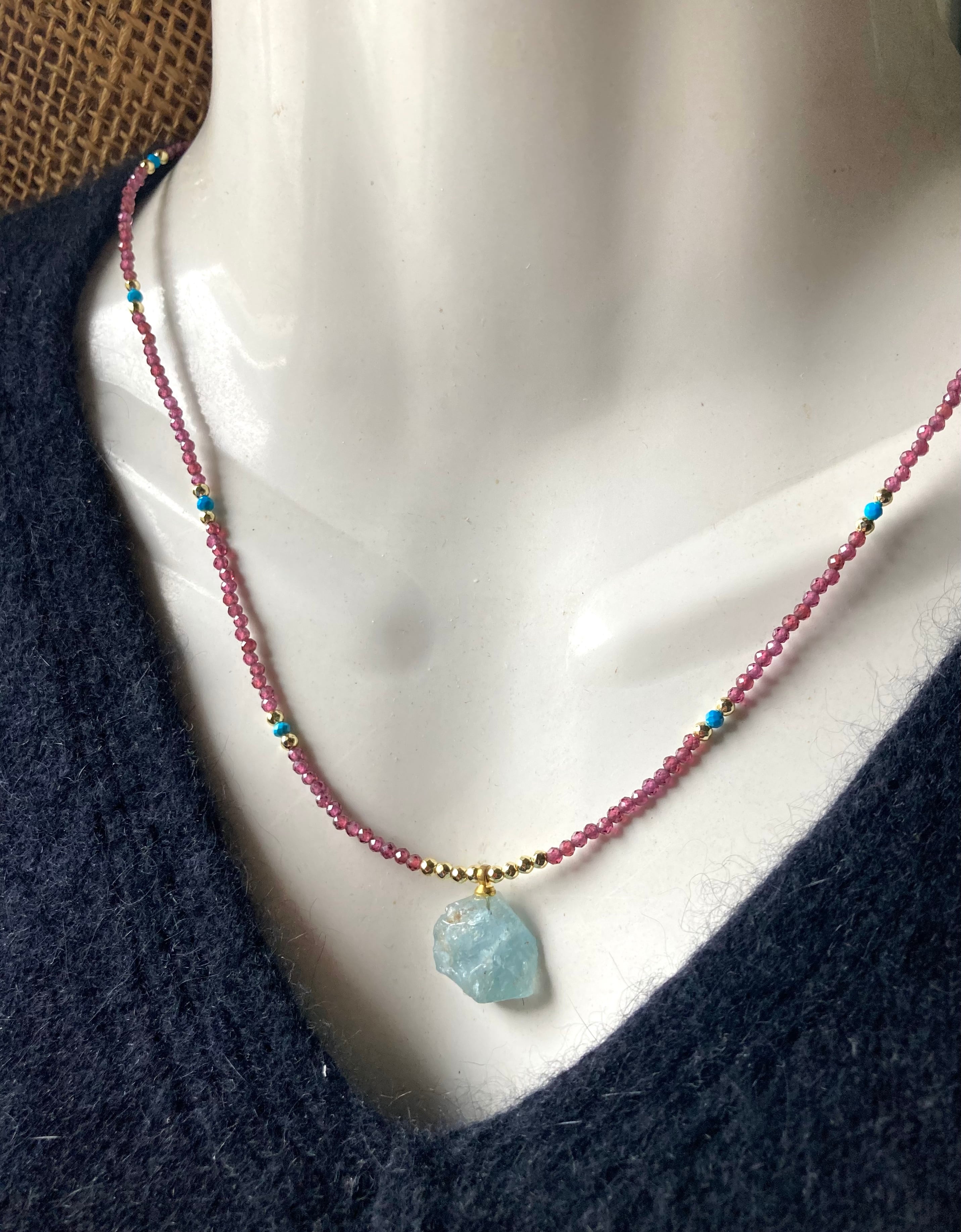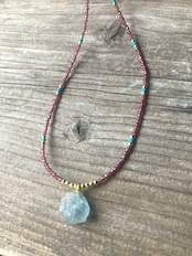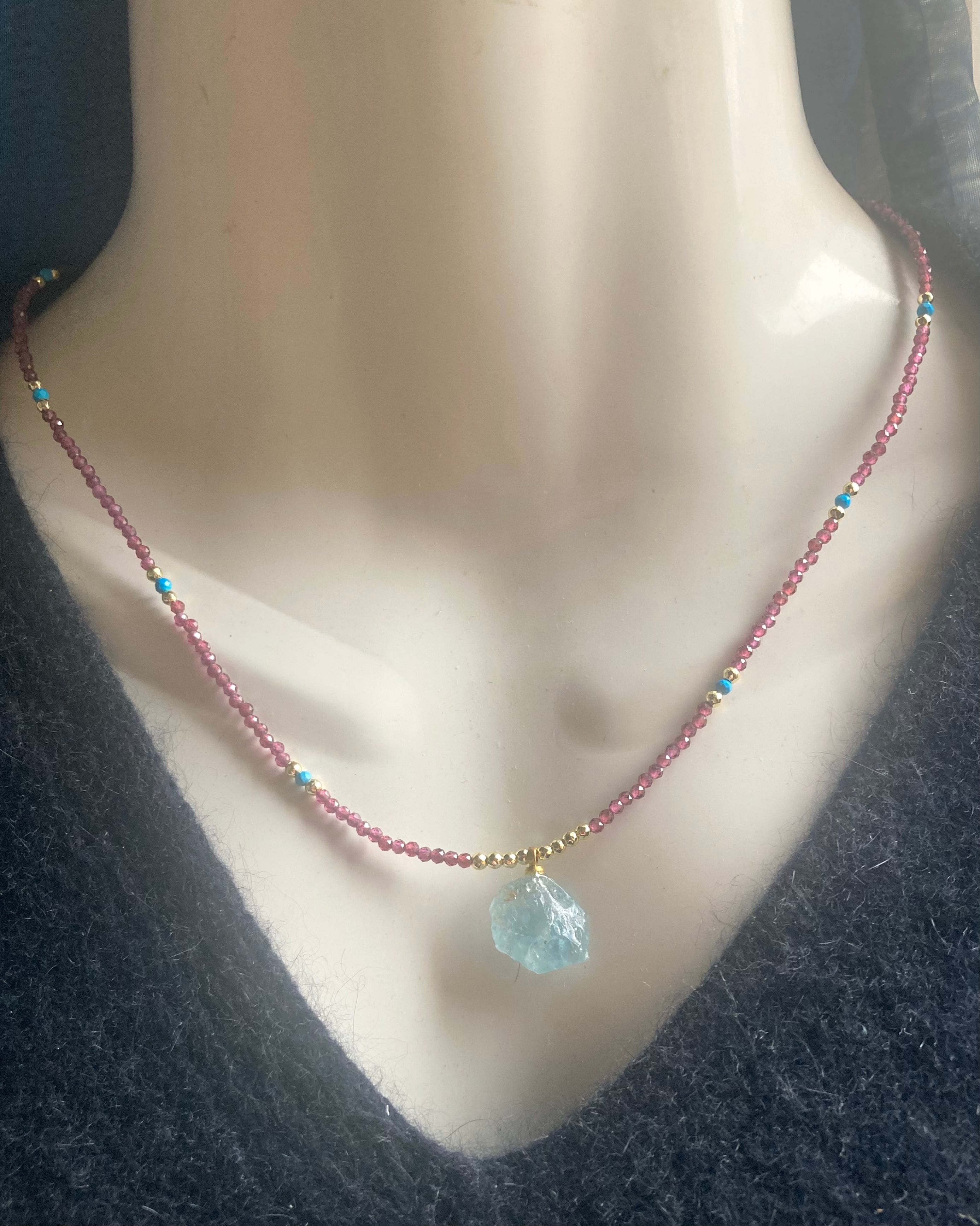 Marine Serenity & Garnet Glow アクアマリン原石とガーネットの海の女神の首飾り *14kgf*