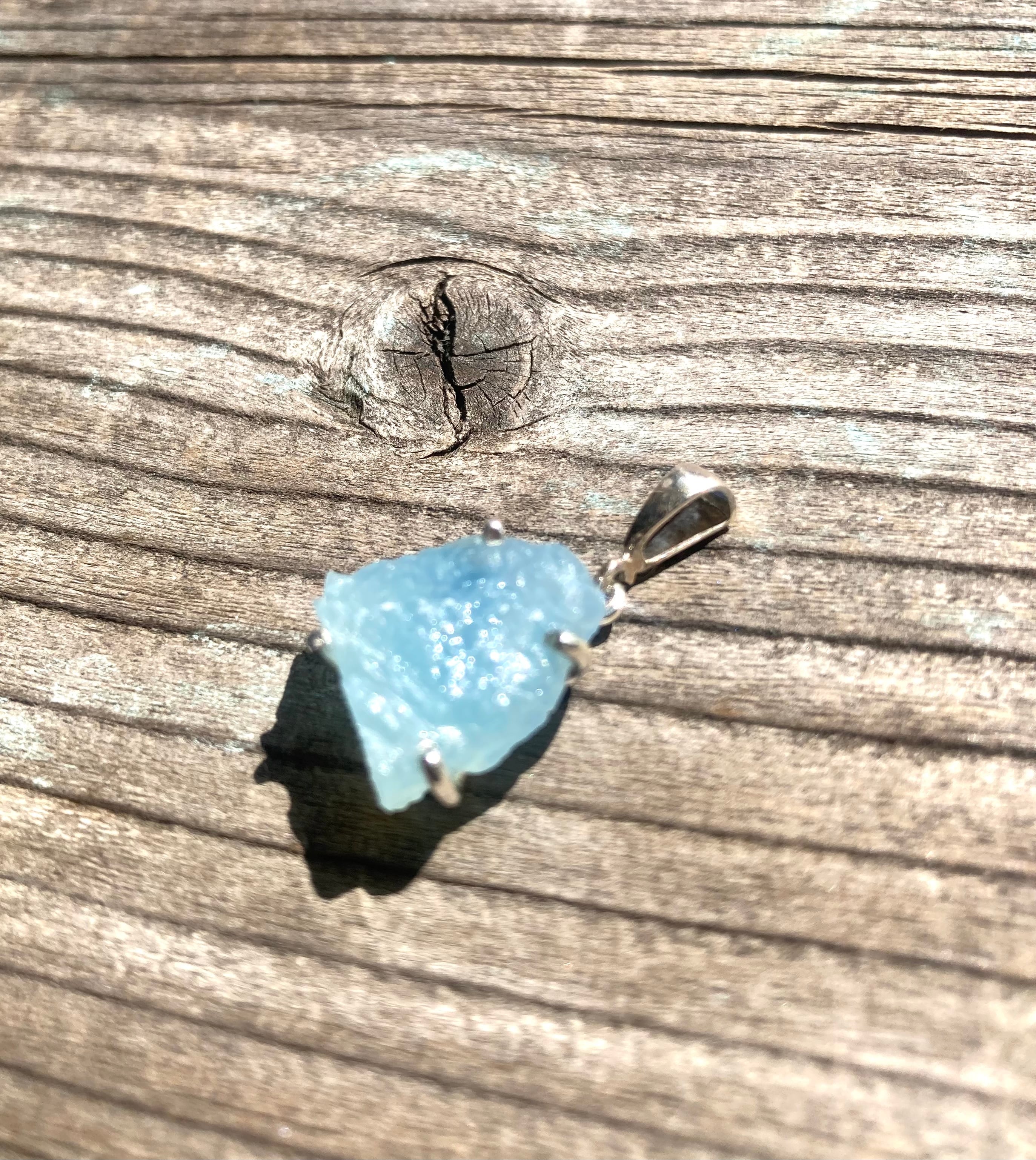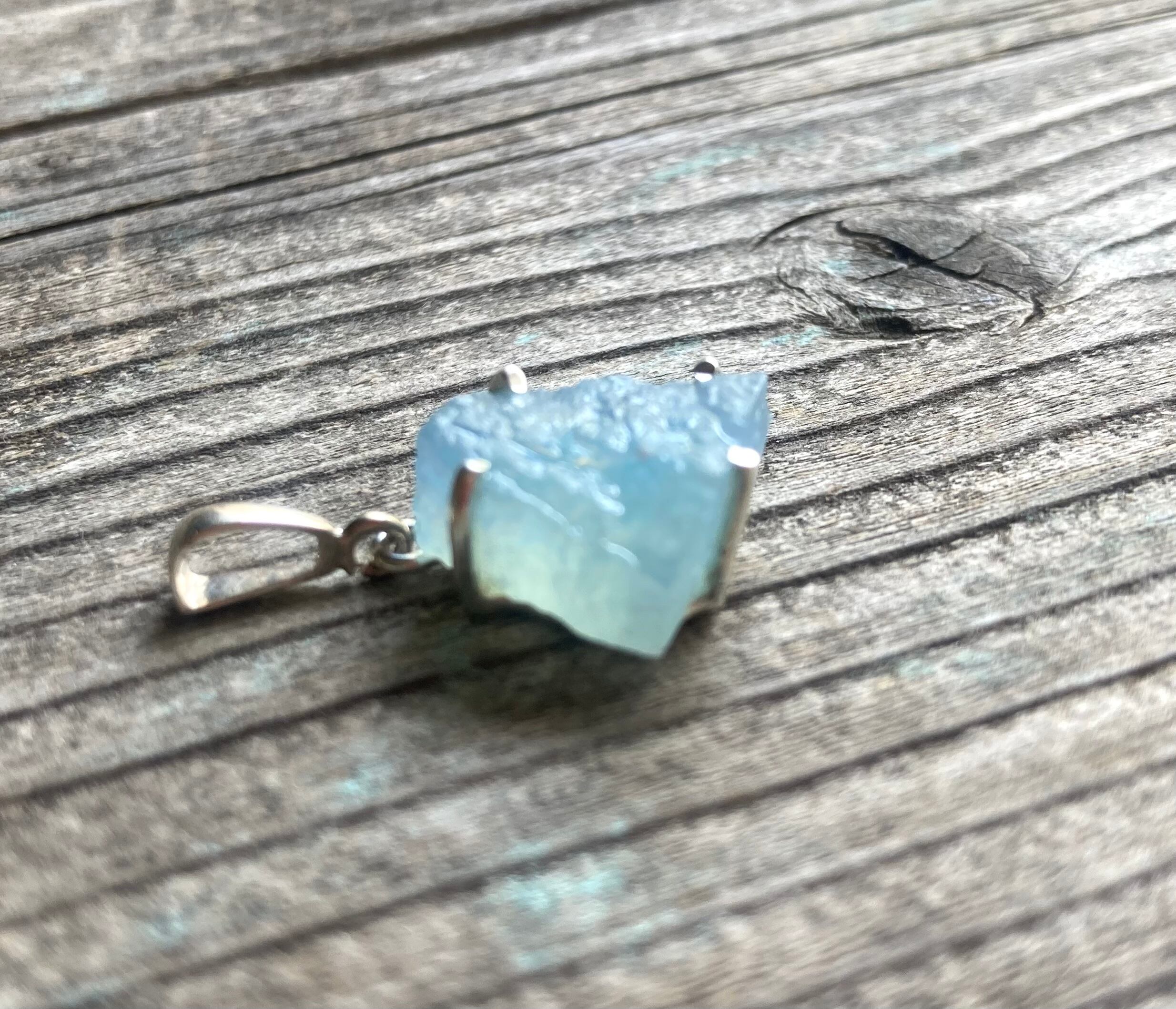 荒削りのままのアクアマリンは、深い海の水を閉じ込めたような透明感。