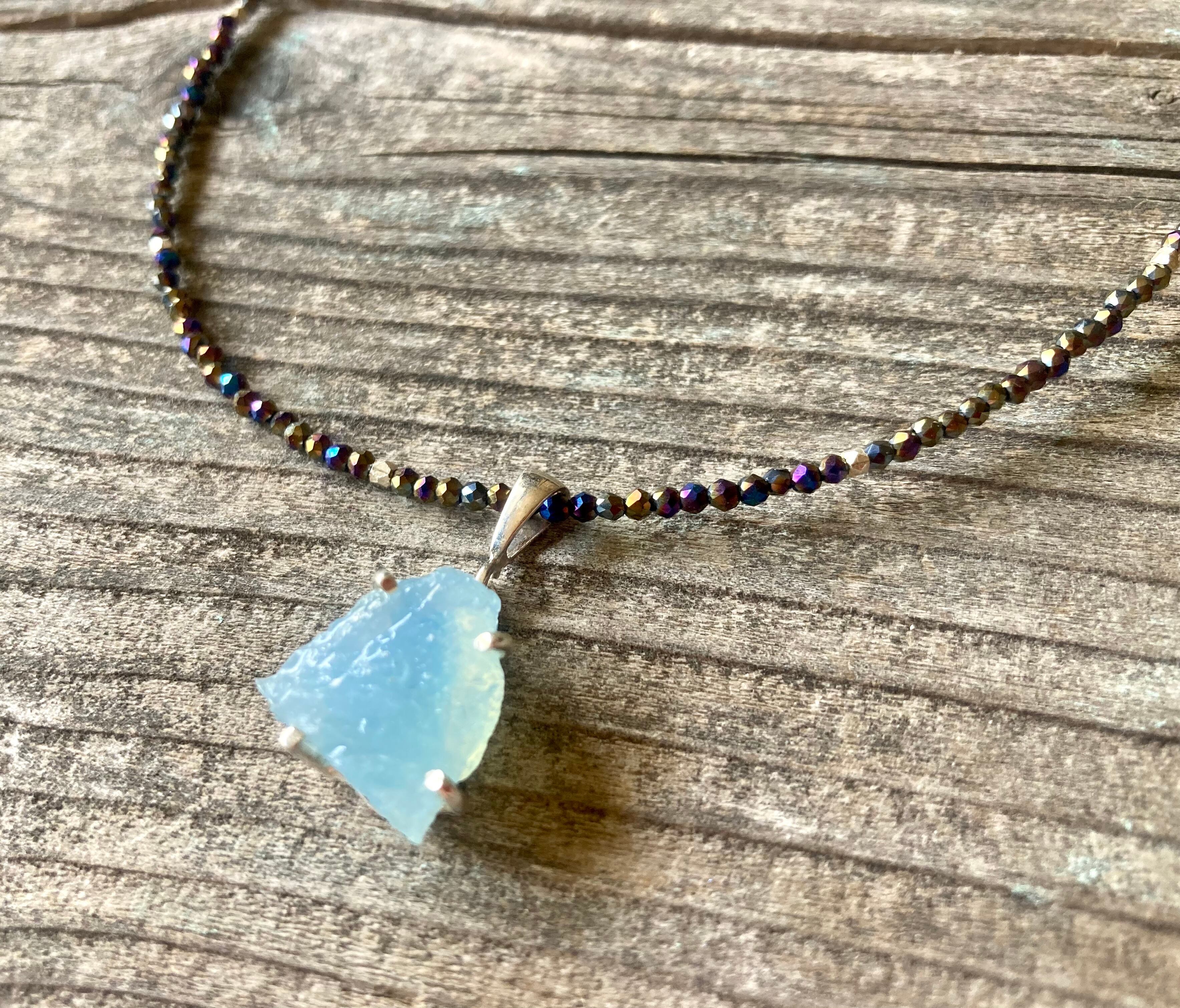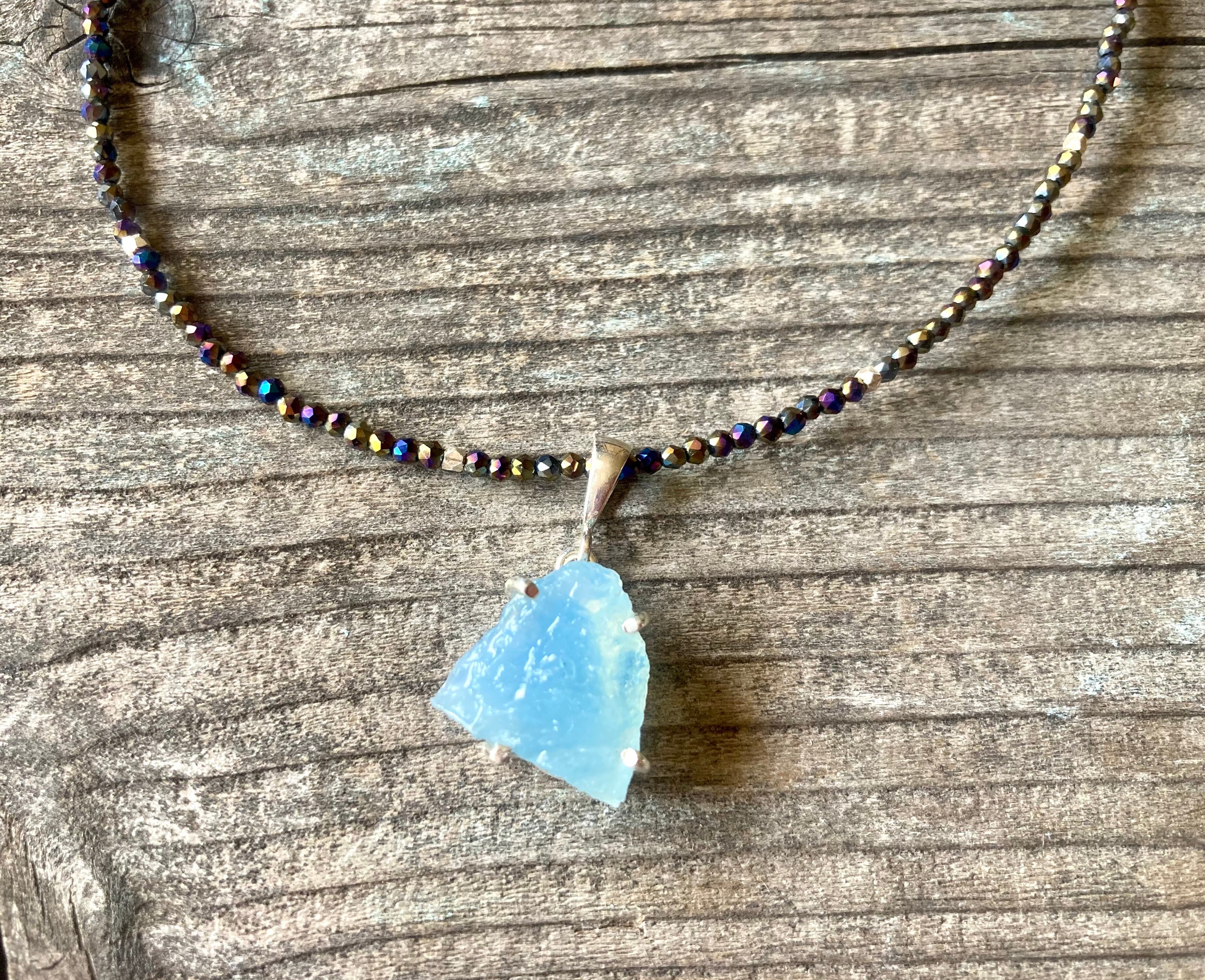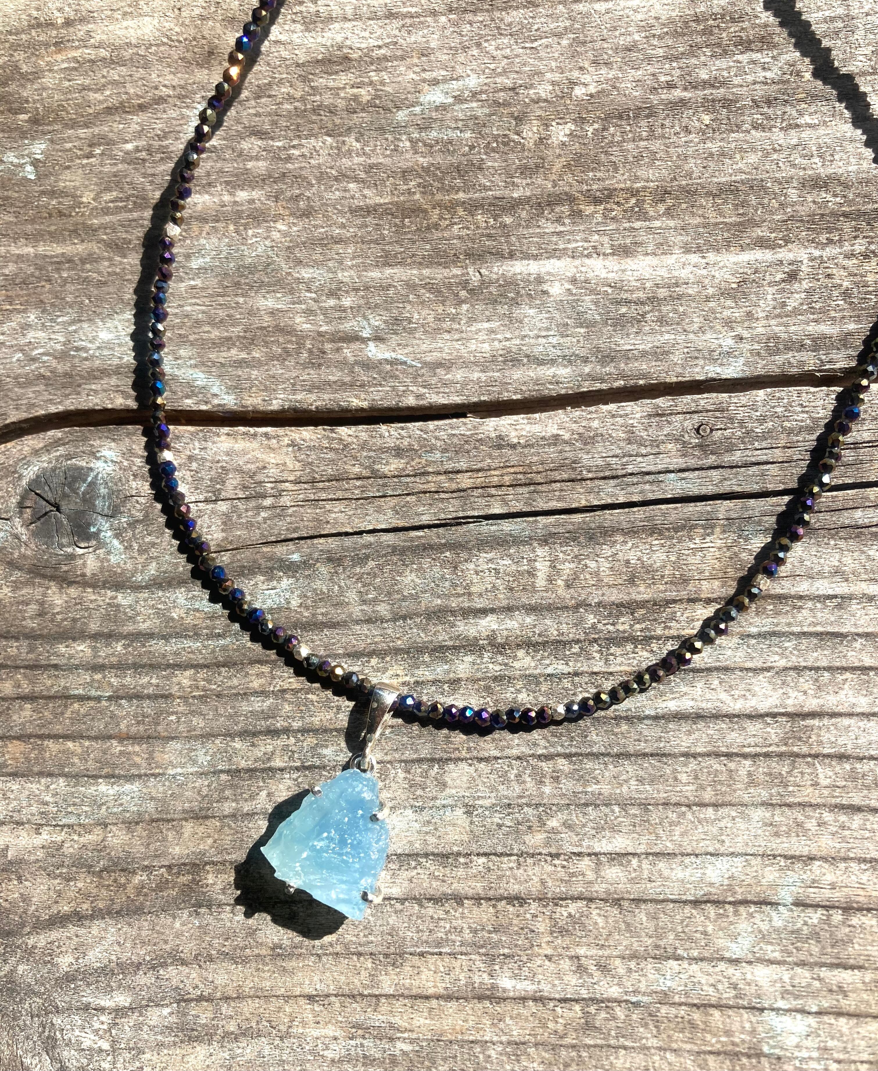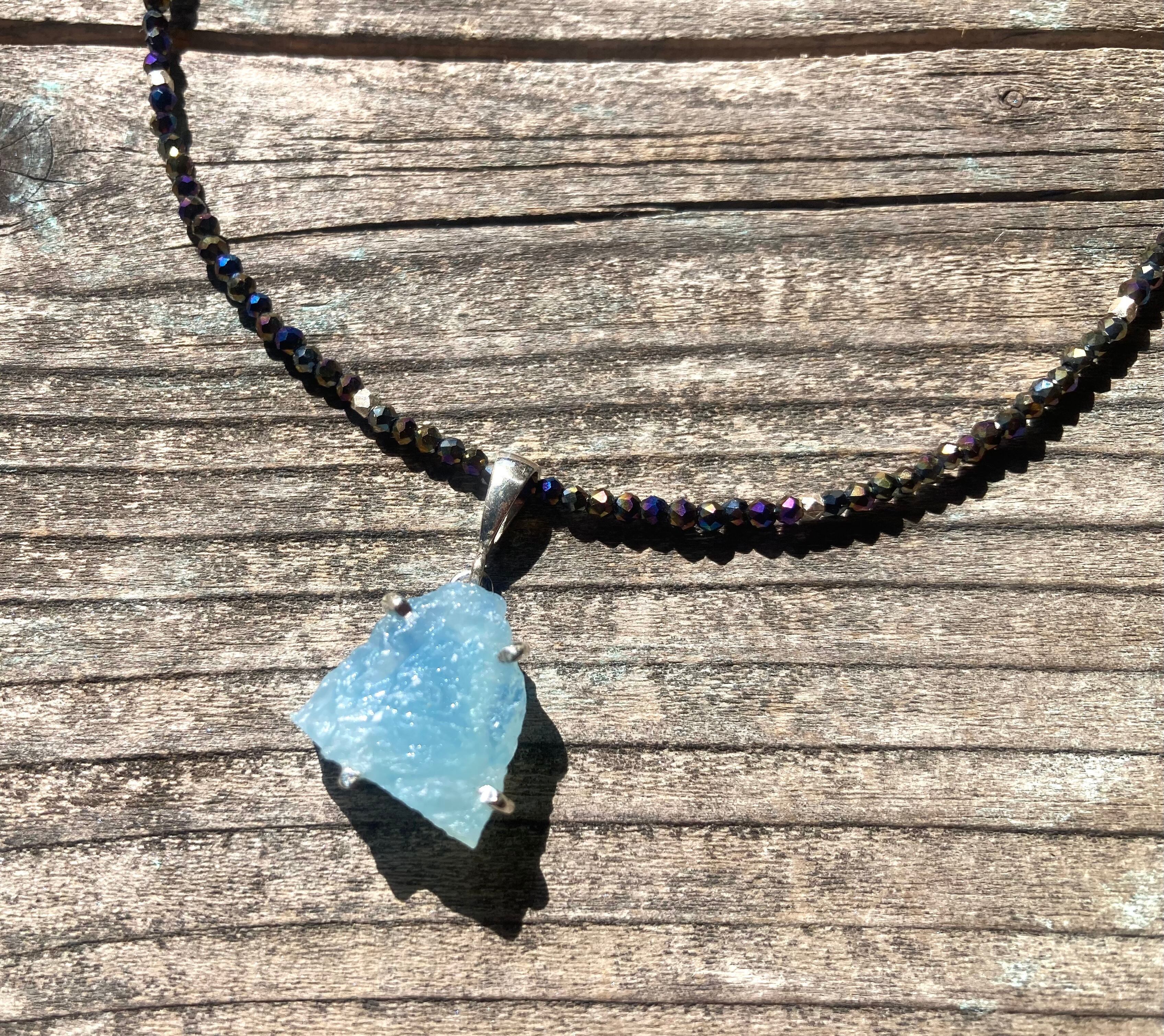 sv925☆Rough Aquamarine ラフロック アクアマリンのブラックスピネルネックレス