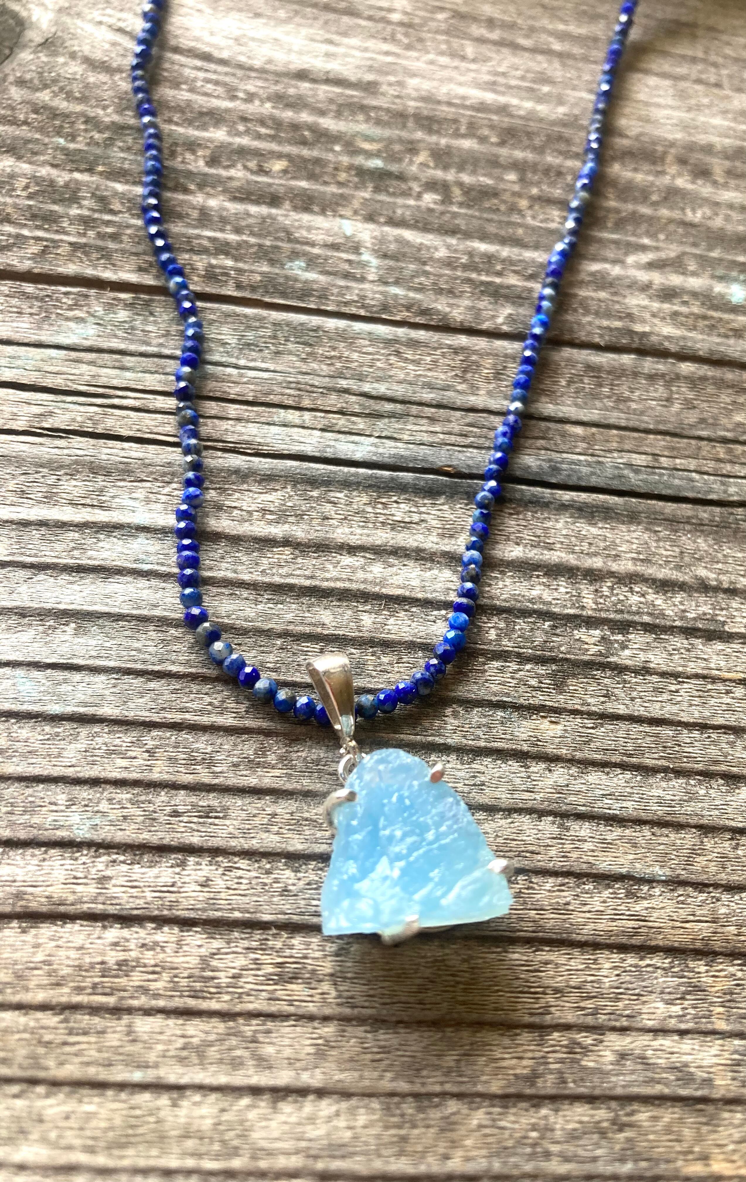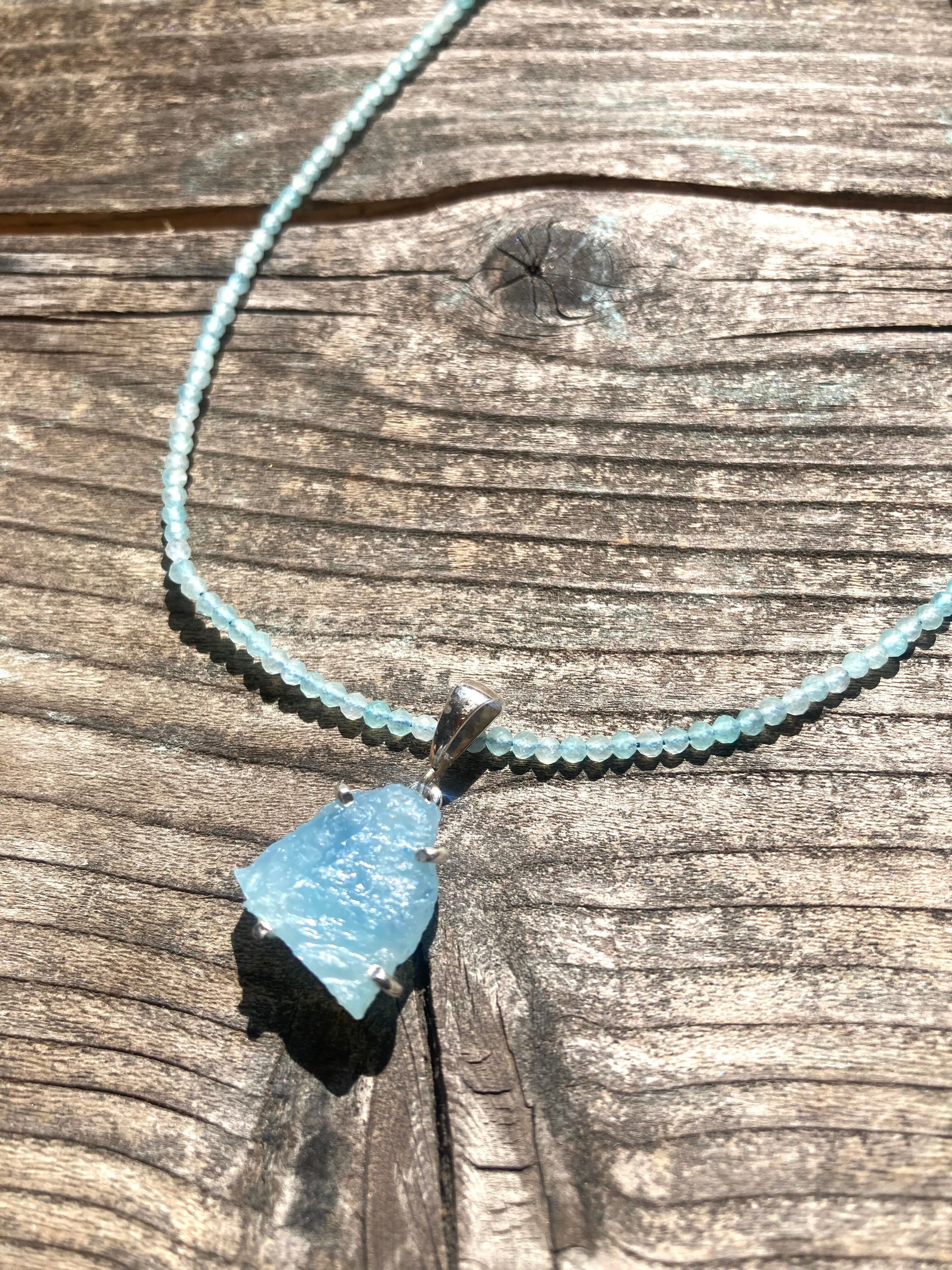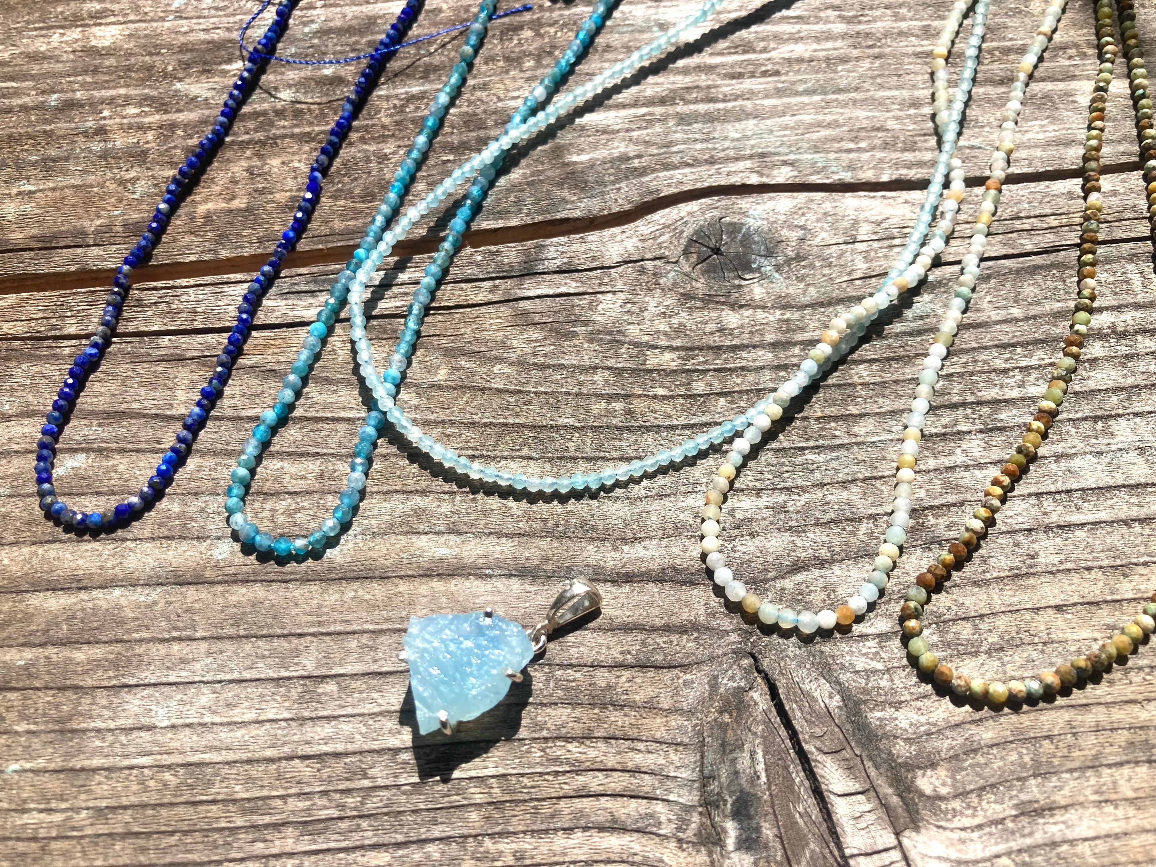 お手持ちのチェーンや革紐にアクアマリンを合わせれば、また違った海の表情に。