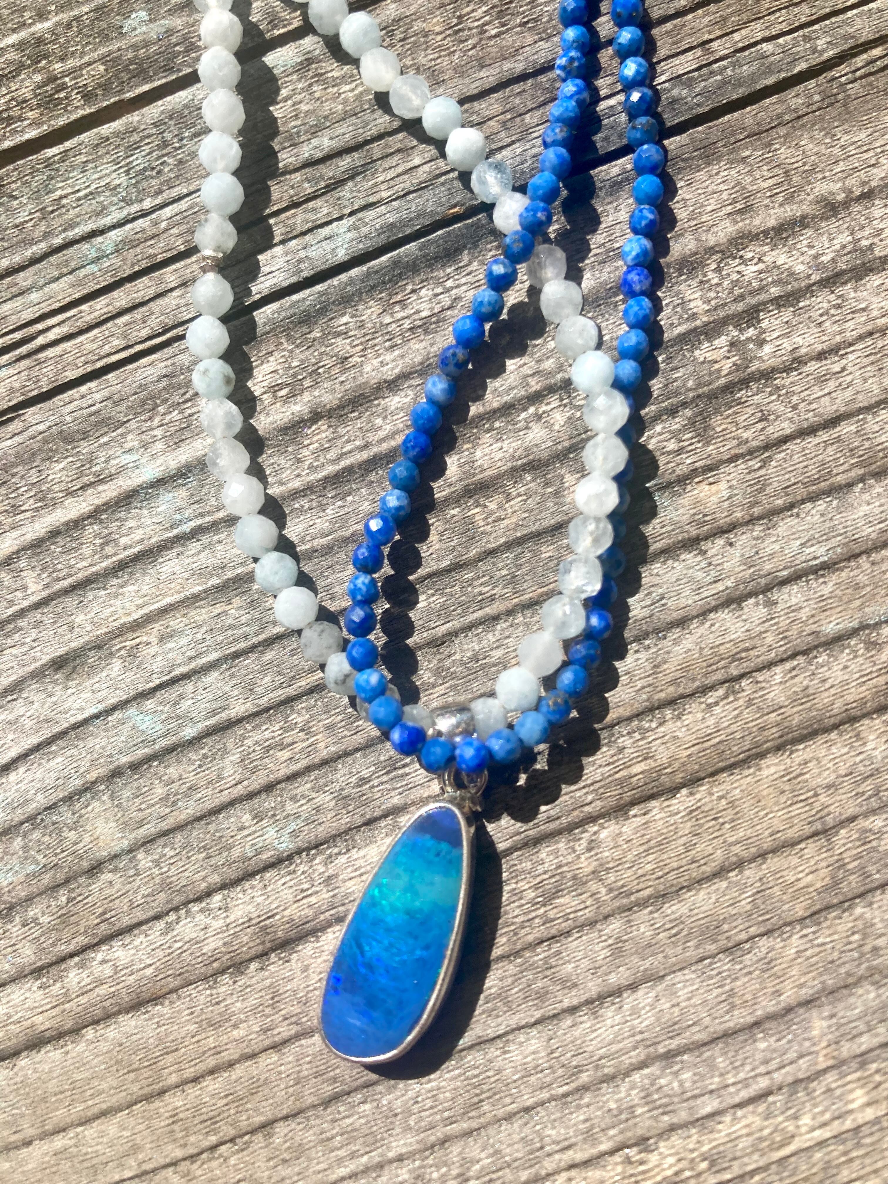 ダブレットオパール オーストラリアオパール 大人のビーチジュエリー 海 ハイクオリティ ラピスラズリ カリフォルニアスタイル ハワイアンスタイル 爽やか 一点物 ダイビング 2WAY 3WAY 銀製 シルバー925 sv925 天然石 ジュエリー アクセサリー ストーン シンプル ハンドメイド プレゼント ギフト デザイン 天然石ジュエリー 夏ジュエリー 涼し気 清潔感