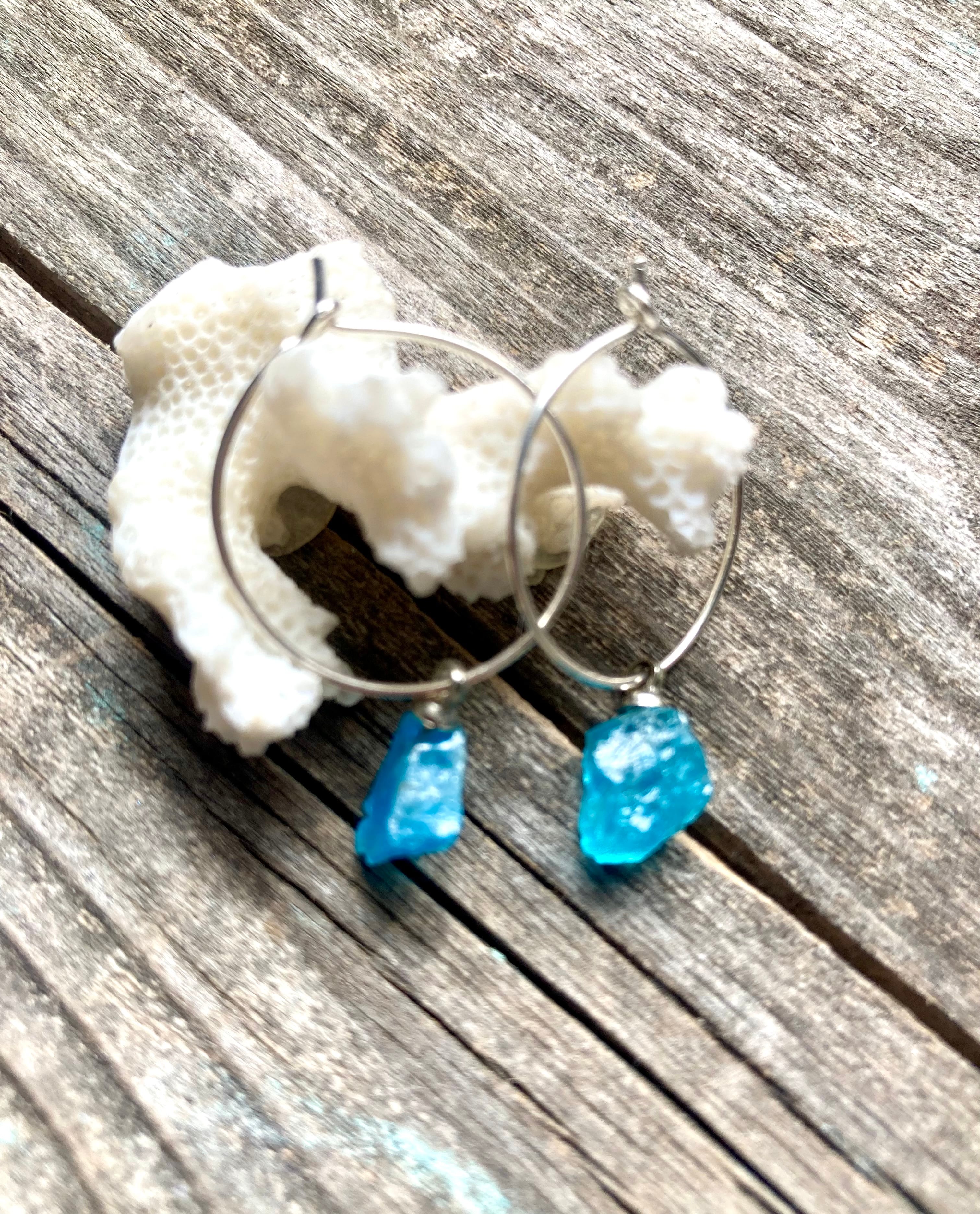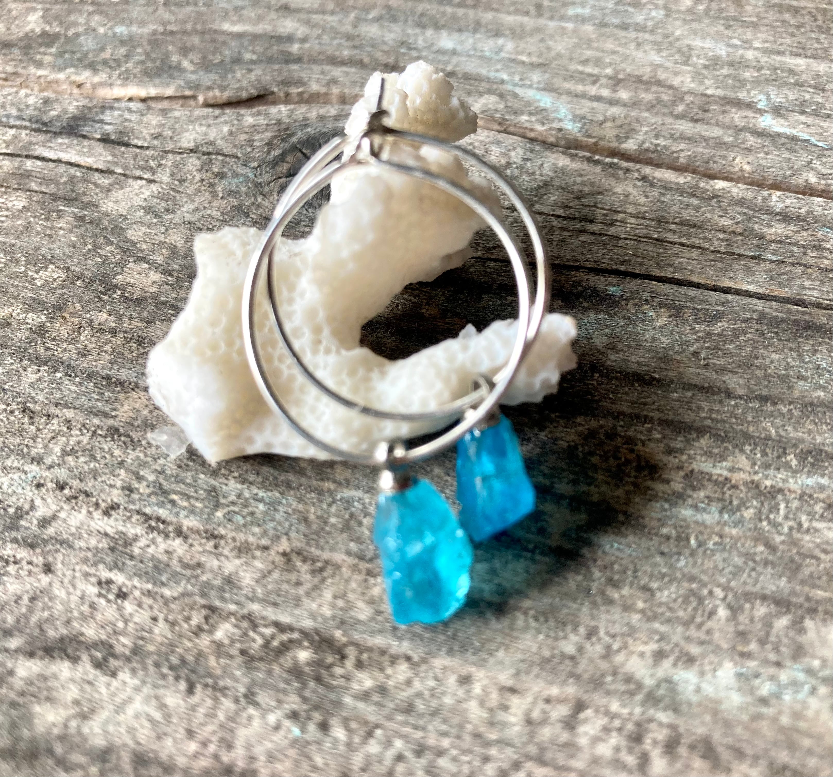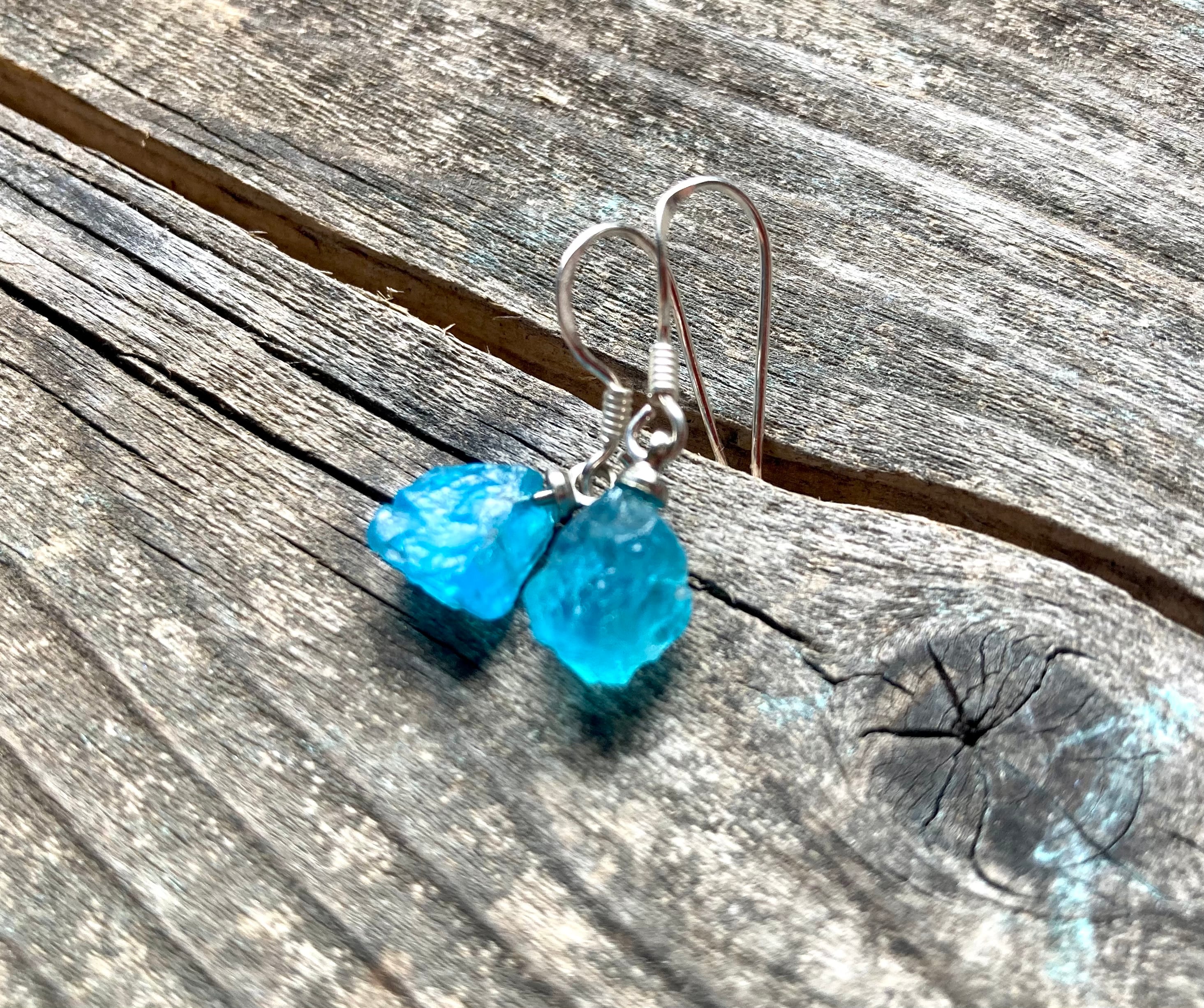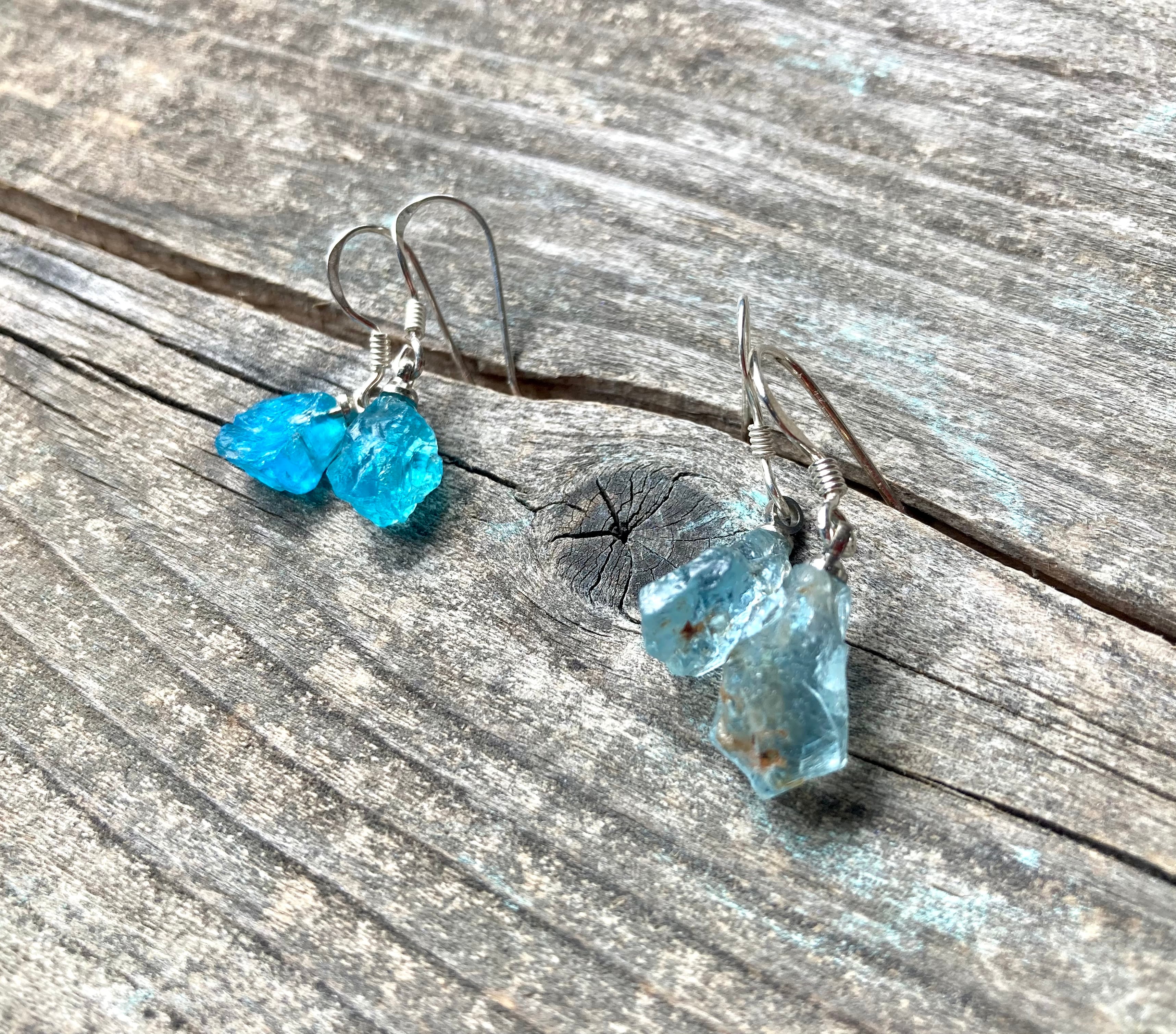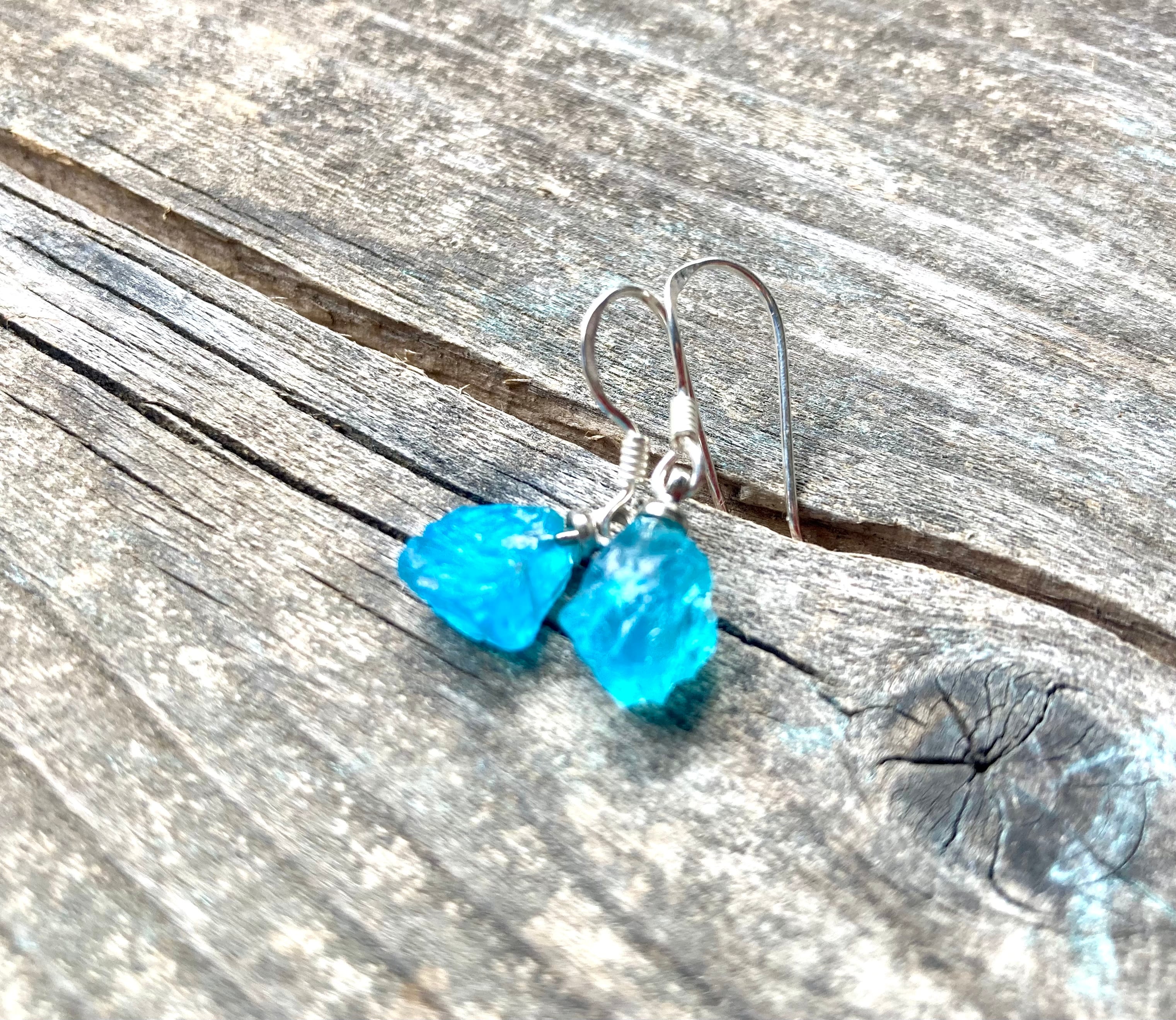 *sv925*apatite rocks ネオンブルーアパタイト原石の一粒ピアス