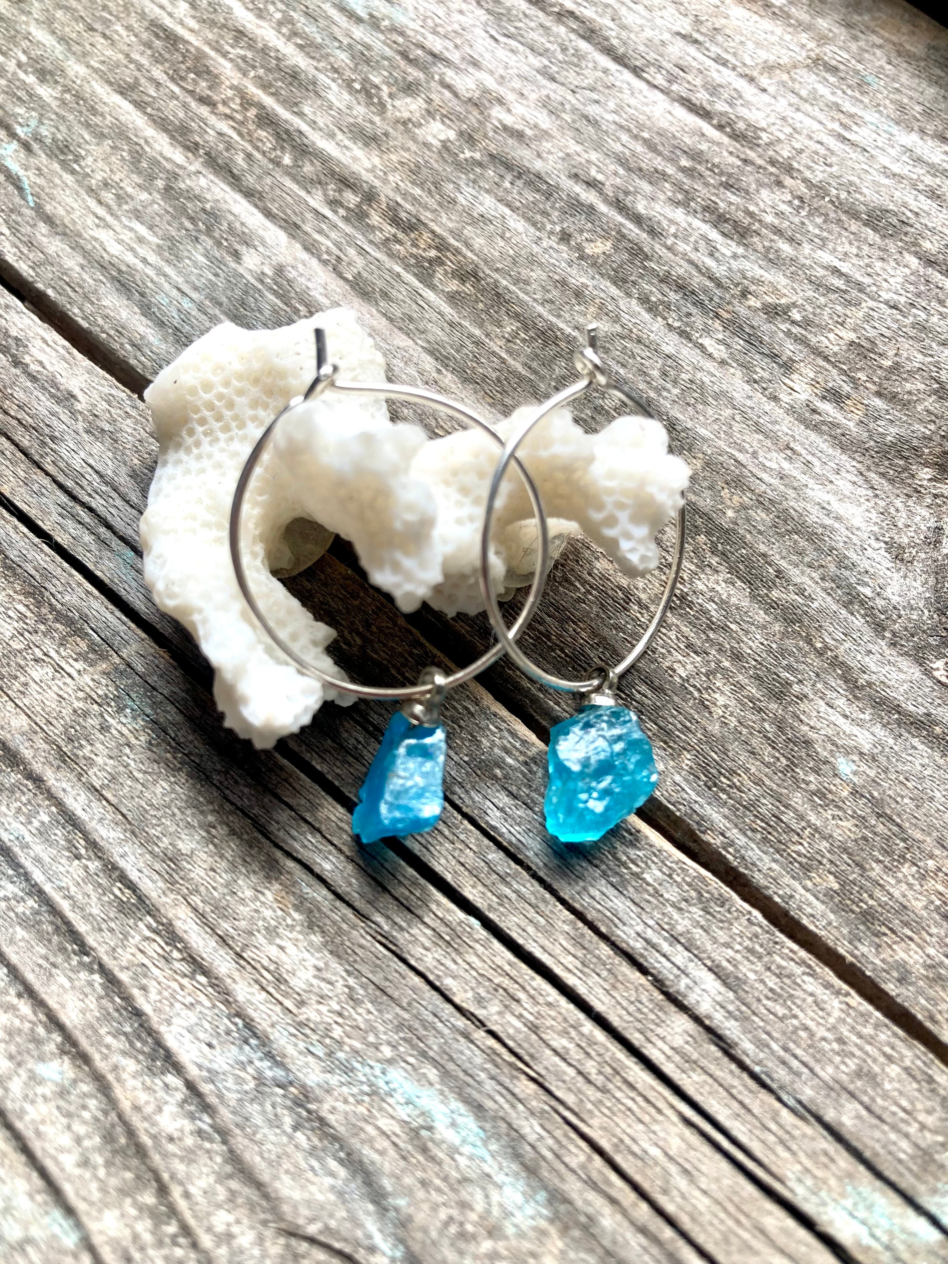 原石らしい凹凸や海の深呼吸を思わせる透明感をそのまま活かし、シンブルなピアスに仕立てました