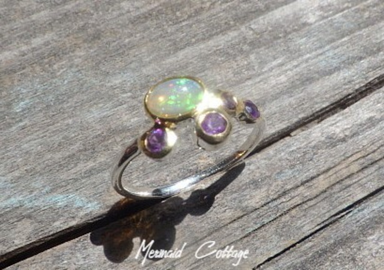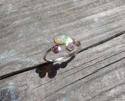 sv925 Opal & Amethyst Sea Foam Ring 人魚姫の祈り☆オパールとアメジストの海の泡リング