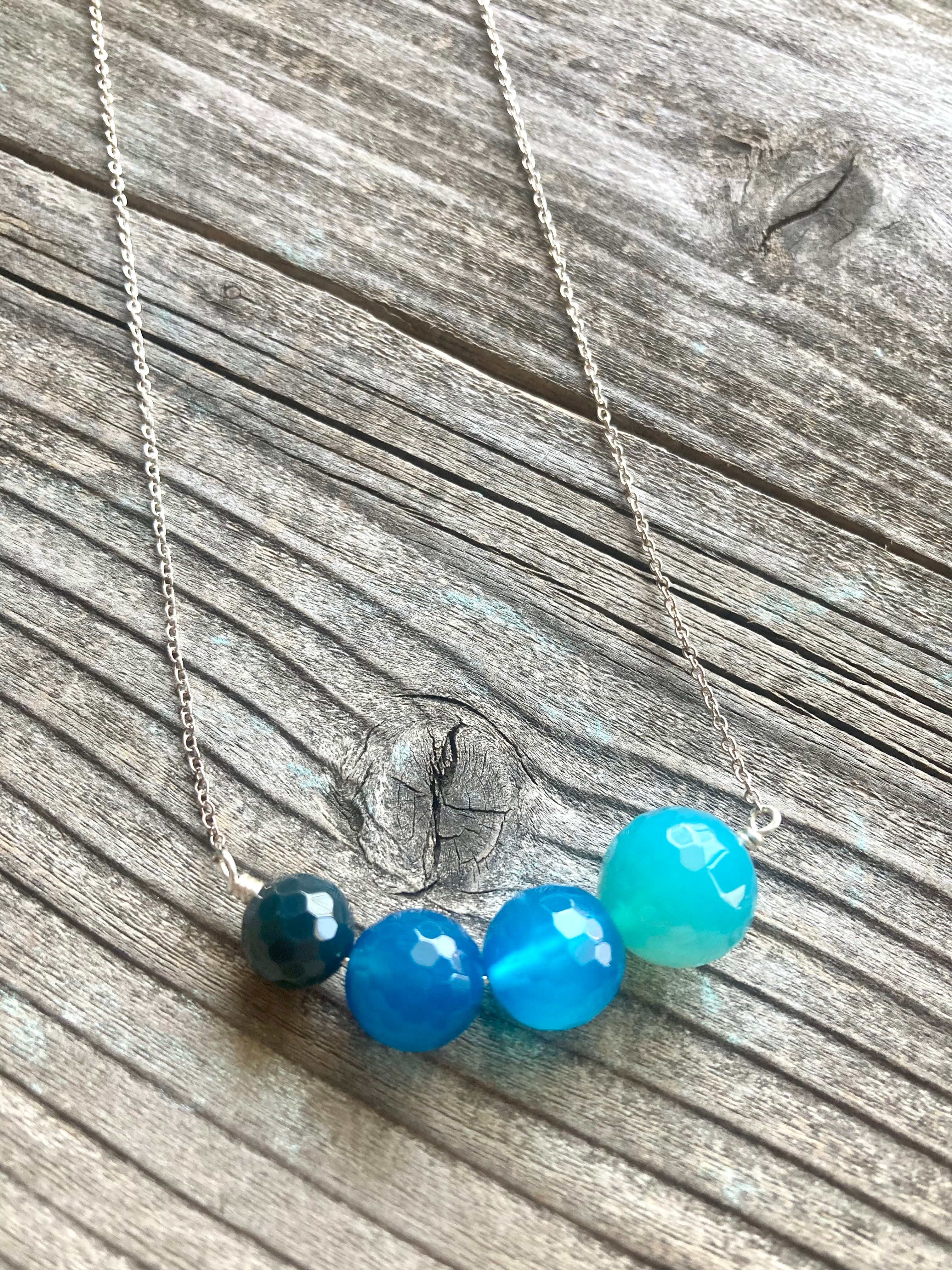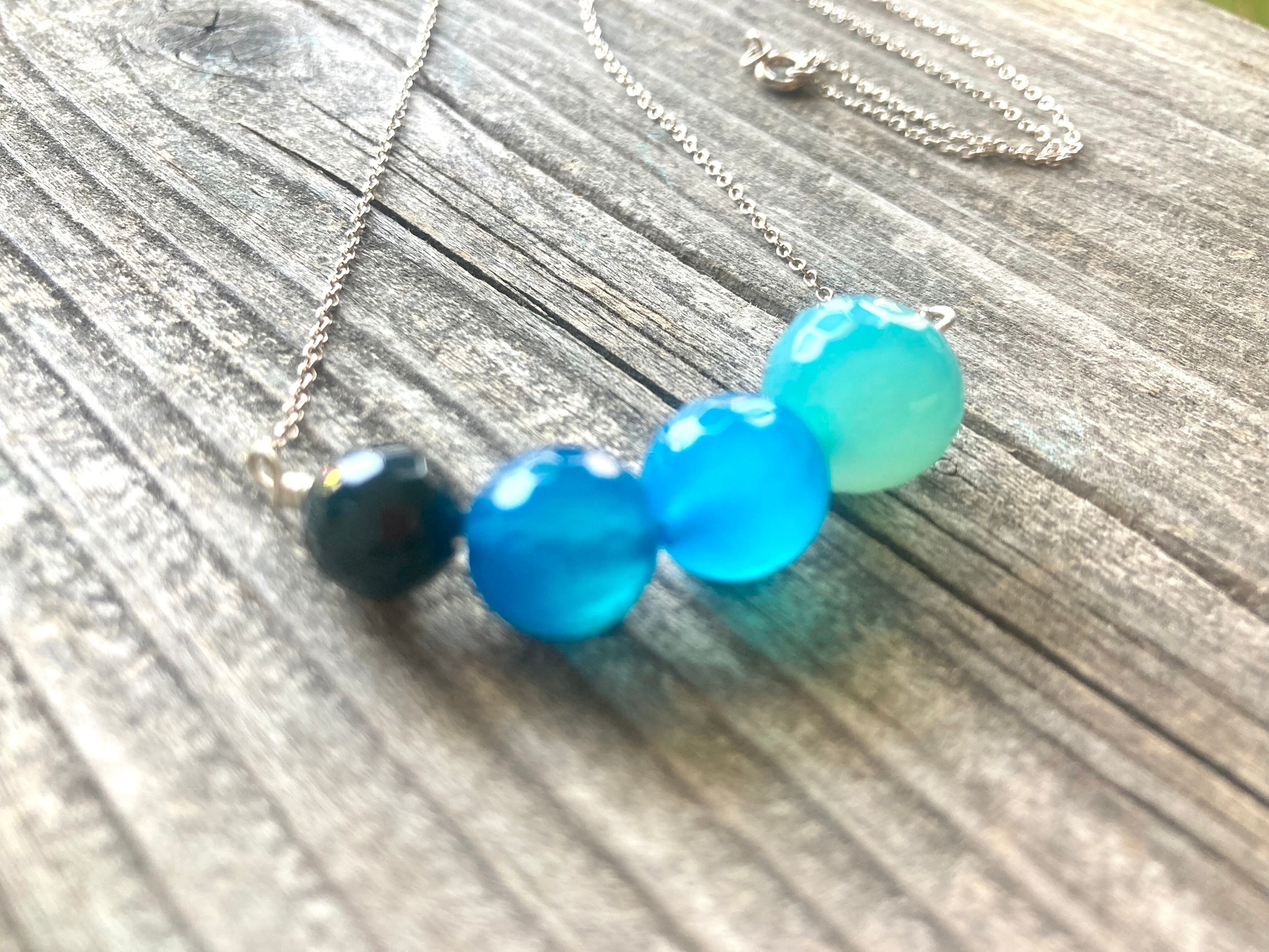 アゲートとシルバー925のシンプルな海色ネックレスです