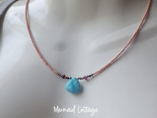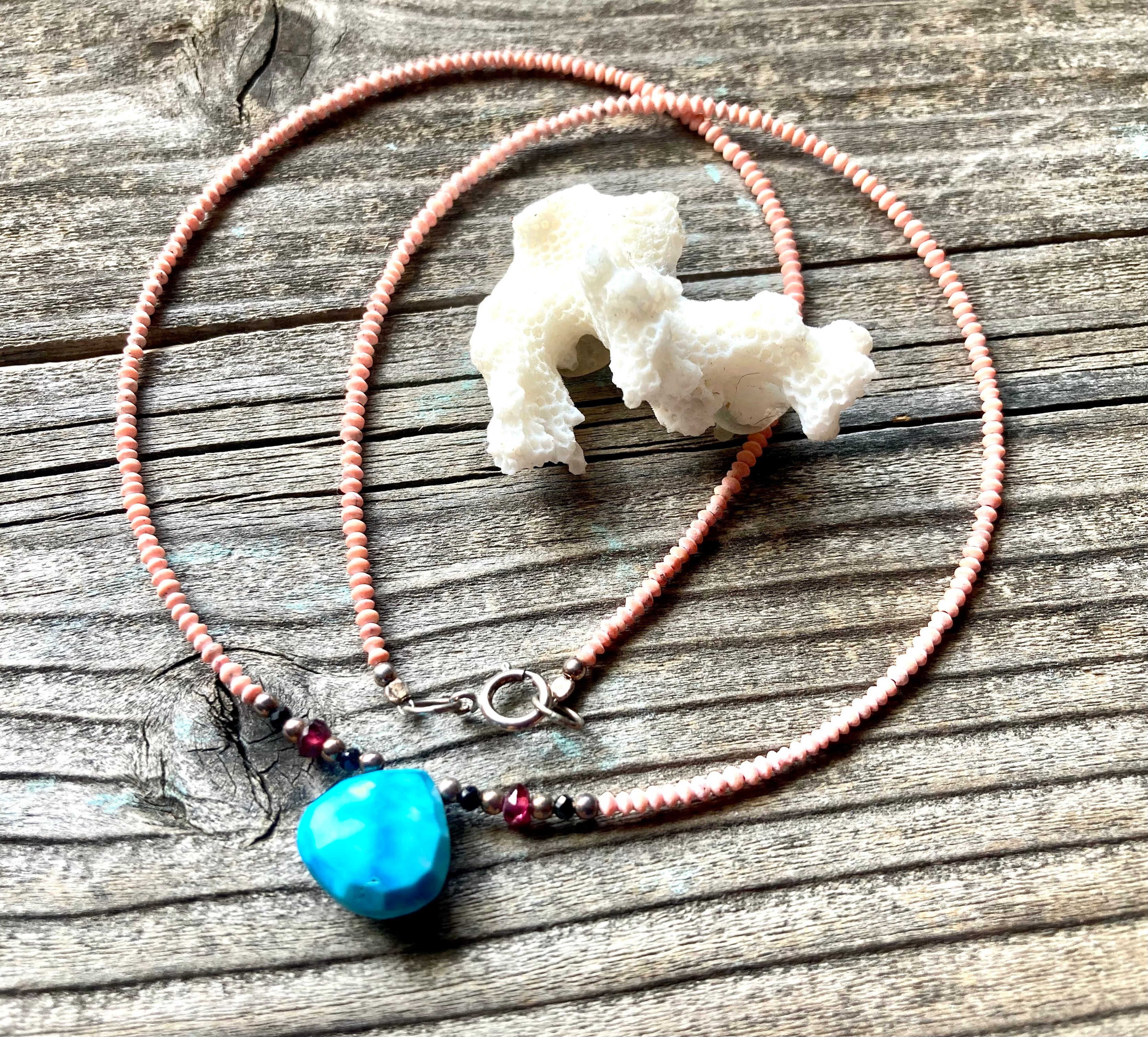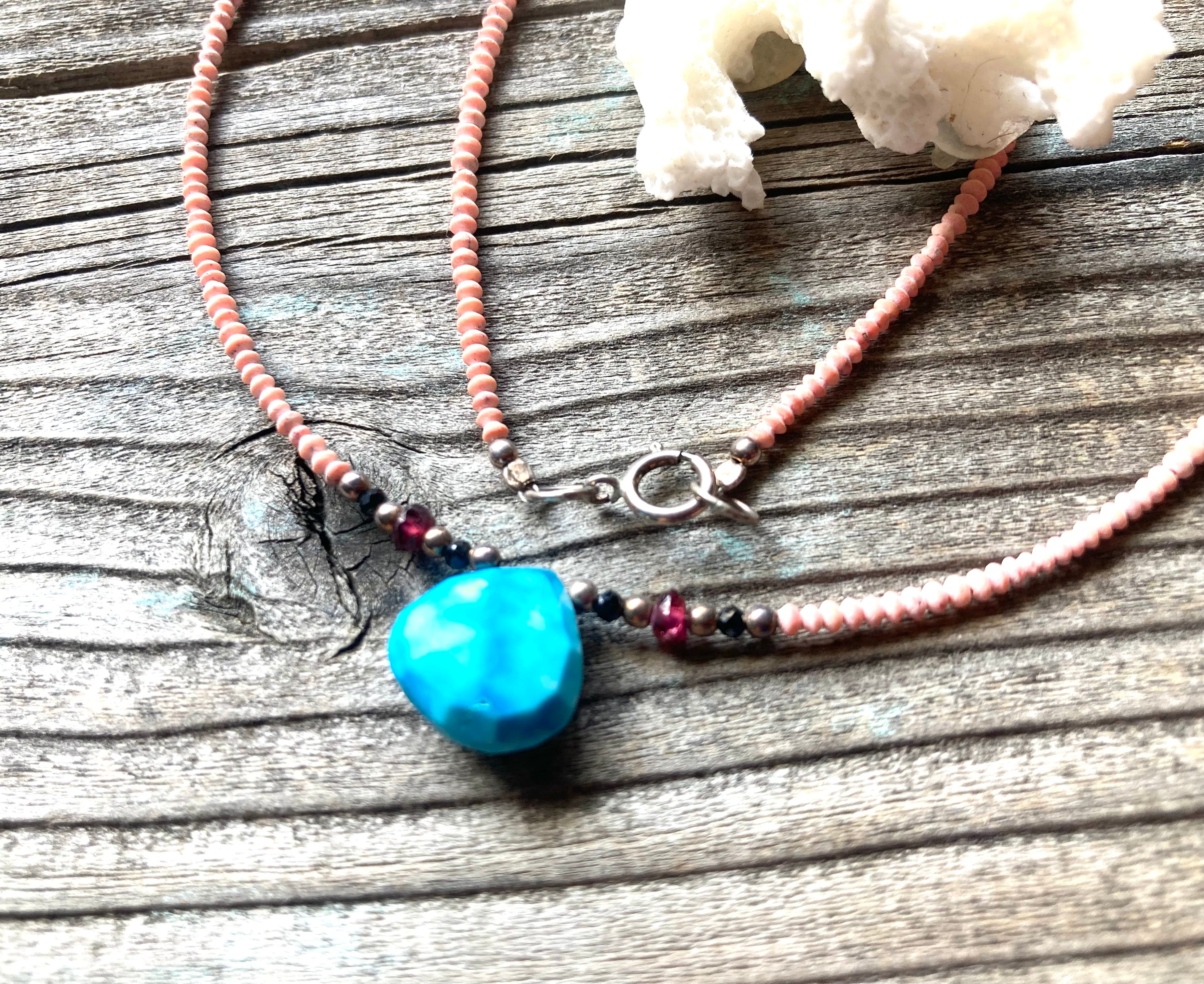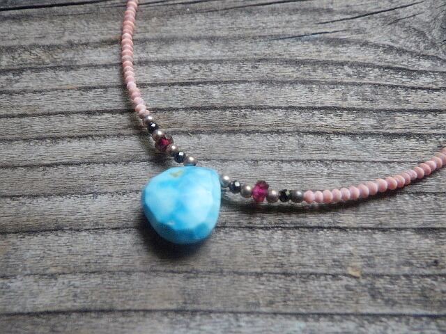 12月の誕生石であるターコイズとアフガニスタン産の希少な極小コーラルをふんだんに使用した、贅沢な総天然石のネックレスが仕上がりました。