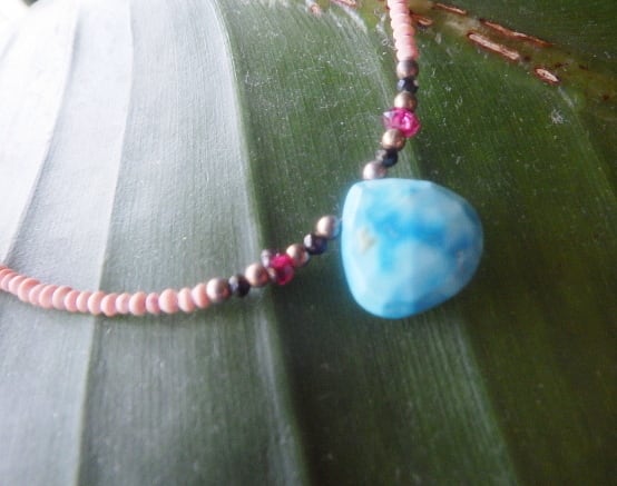 サンセットと青い海を思わせる鮮やかなブルーと珊瑚のオレンジが胸元に宿る、明るいエネルギー溢れるネックレスはいかがでしょう