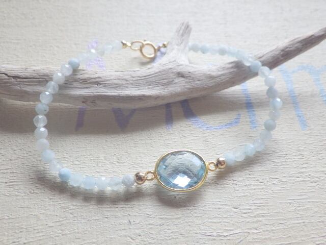 ブルートパーズとアクアマリン ビーチブレスレット 14Kgf