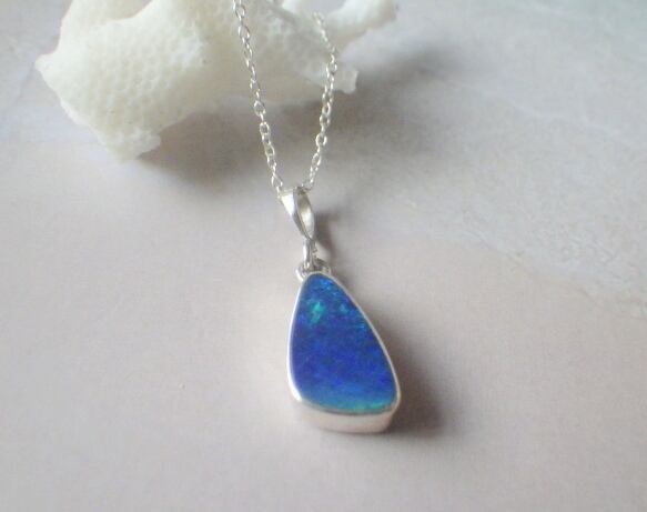 シルバー925で包み、加工したダブレットオパールの美しさを活かすため敢えてシンプルなひと粒だけのネックレスにしました