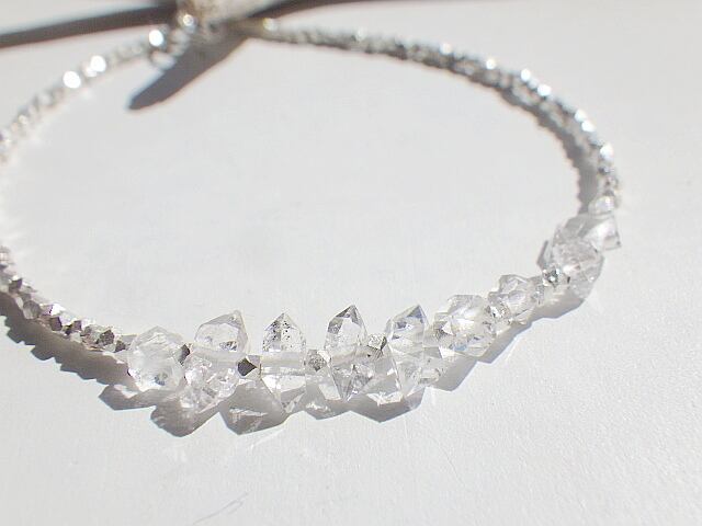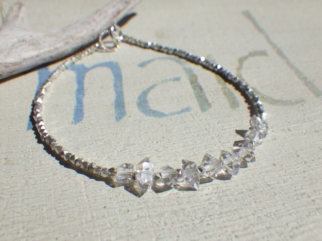 雪の欠片のような美しいハーキマーダイヤモンドを連ねたブレスレットです