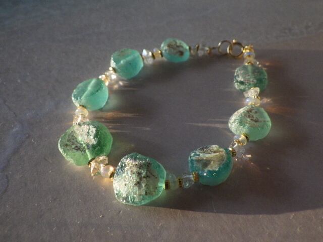 Sea form Romanglass ローマングラスとオパールのブレスレット