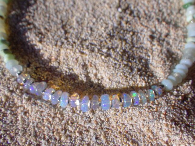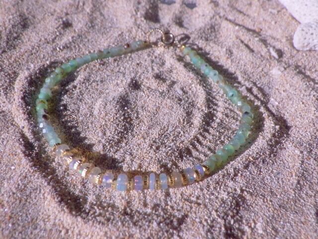 そんなプレシャスオパールを淡いシーフォーム色のペルビアンオパールにふんだんに散りばめた華奢なブレスレットです