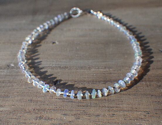 ※エチオピア産のオパールはその殆どがハイドロフェーンタイプ(水分を含む)のオパールです。石に含まれる水分が光を分散し、その独特の七色の光はプレイオブカラー(遊色現象)と呼ばれます。硬度が弱く衝撃や乾燥に弱いのでご使用後はジップ等で保管するなど、お取り扱いにはご注意下さい