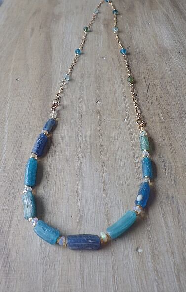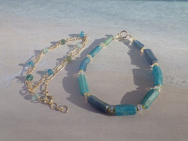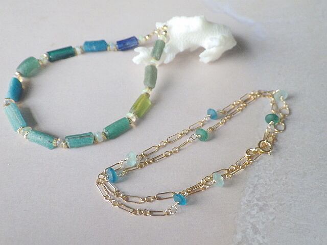 4WAY! 海色ローマングラス Ocean Romanglass Bracelet&Necklace *14kgf*