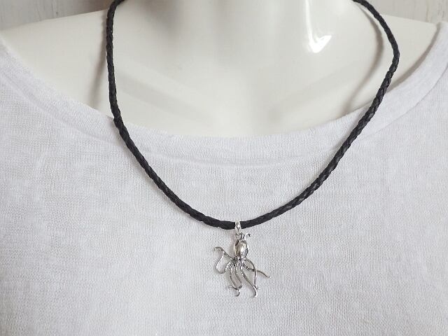 Octopus Sterling Silver Necklace タコの革ひもネックレス *sv925*