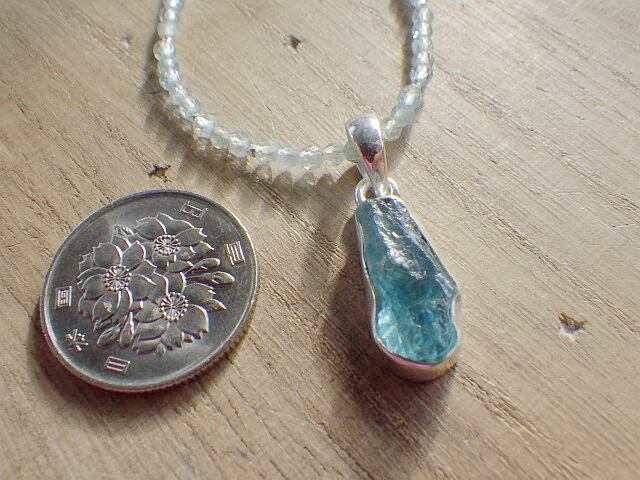 海を切り取ったような美しいブルーのアパタイトのラフロックとアパタイトのビーズをふんだんに使用したアパタイトと銀のみのネックレスです