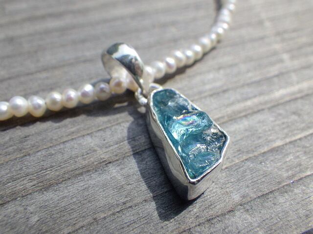 優しい海の誘惑☆アパタイトのラフロック淡水パールネックレス*sv925*