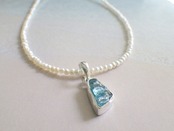 小さな淡水パールをネックレスにして合わせました。ホワイトにブルーが映えます!