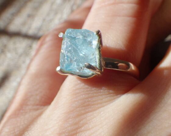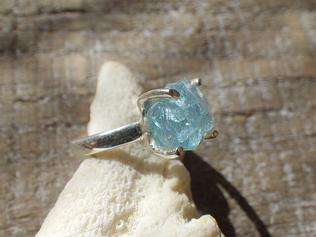 美しいラフロックのアパタイトの一粒シルバーのリングです