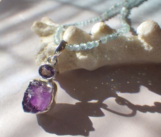 愛の守護石として有名なアメジストのラフロックをネックレスにしました