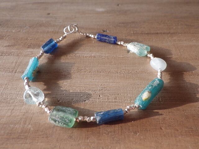 *sv925*ローマングラスとカレンシルバー&アクアマリンのブレスレット