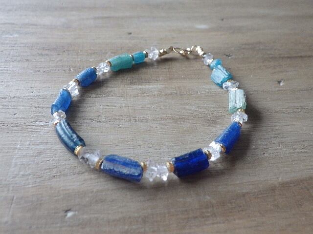 *14kgf*Roman Glass& Herkimer Crystal Sea Bracelet