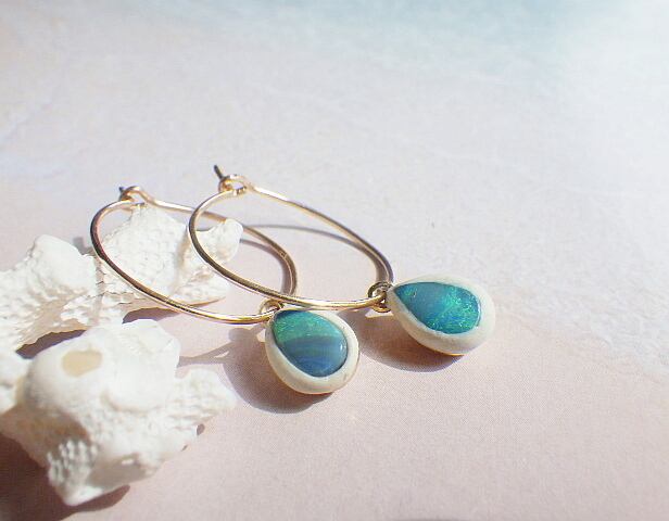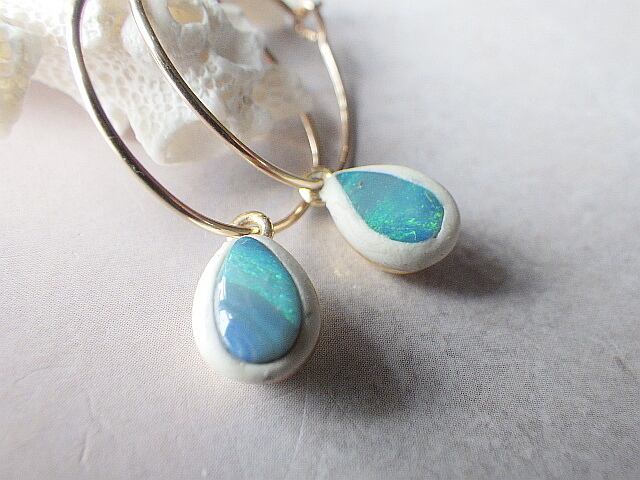 海の美しさをギュっと凝縮したようなプレシャスオパールをピアスにしました