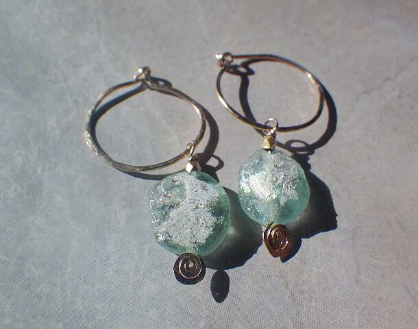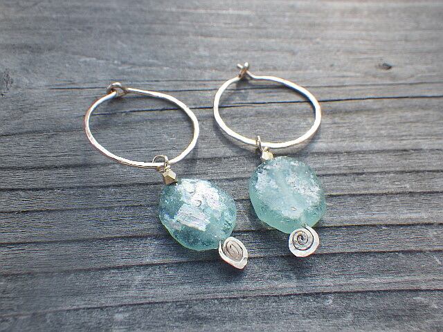 *14Kgf* Swirl Roman Glass 渦巻ローマングラスのフープピアス☆銀化☆