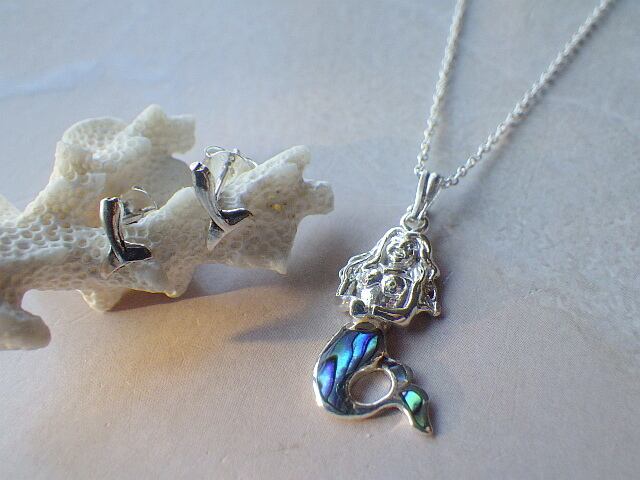 ハイクオリティなシルバー925とパウアシェルのシルバーマーメイドはロングヘアなどの細部まで凝っており、よく見るとニッコリ微笑んでます