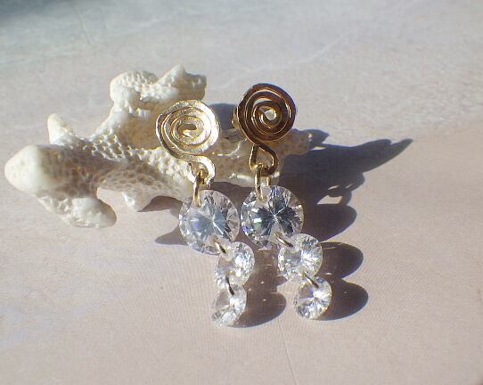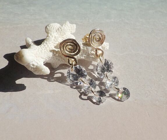 そんな感じで波の渦をイメージして14カラットゴールドフィルドワイヤーで作ったスタッドピアスから、大、中、小の大きさで上から下に小さくなっていくようにジルコニアを配置し、海の女神がしていそうなロマンティックなピアスにしました