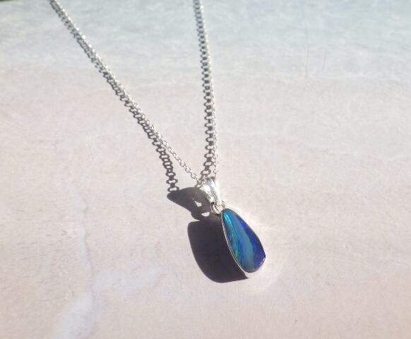 シルバー925で包み、加工したダブレットオパールの美しさを活かすため敢えてシンプルなひと粒だけのネックレスにしました