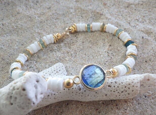 白い砂浜と青い海のグラデーションをイメージした海を纏うようなブレスレットです
