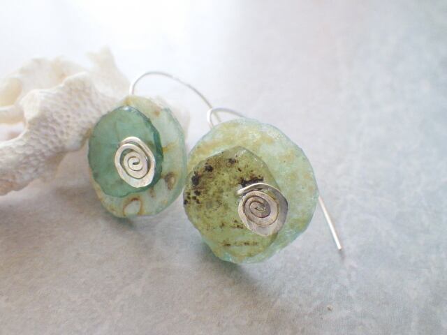 海の泡と波の渦をイメージした古代ローマングラスのシルバー925ピアスです