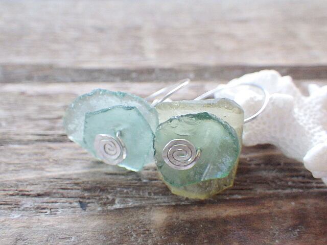 海の泡と波の渦をイメージした古代ローマングラスのシルバー925ピアスです