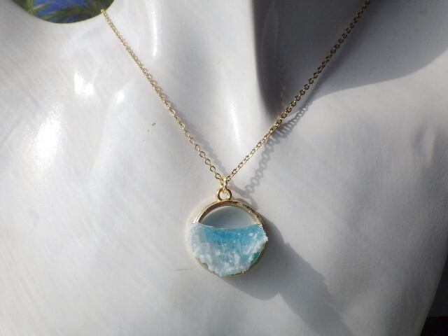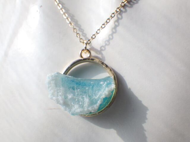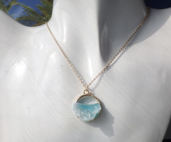 ノースショアの巨大なパイプラインをイメージして樹脂とポリエスチレンで作ったうねる波のトップがインパクトあるネックレスです
