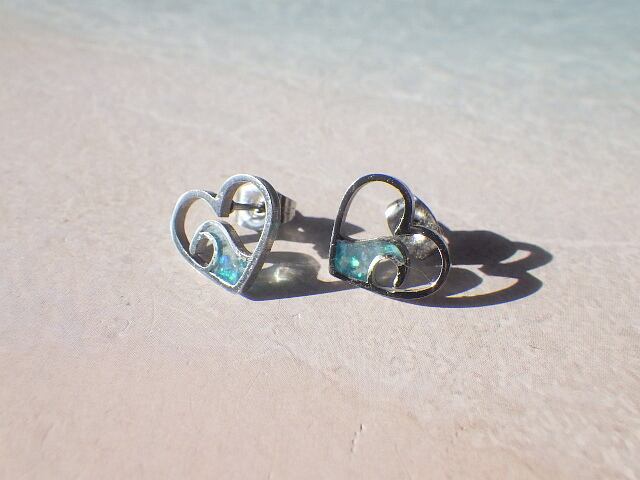 心の波、 心臓の揺れ・・を表すような波の入ったハートシェイプが耳朶を飾ります